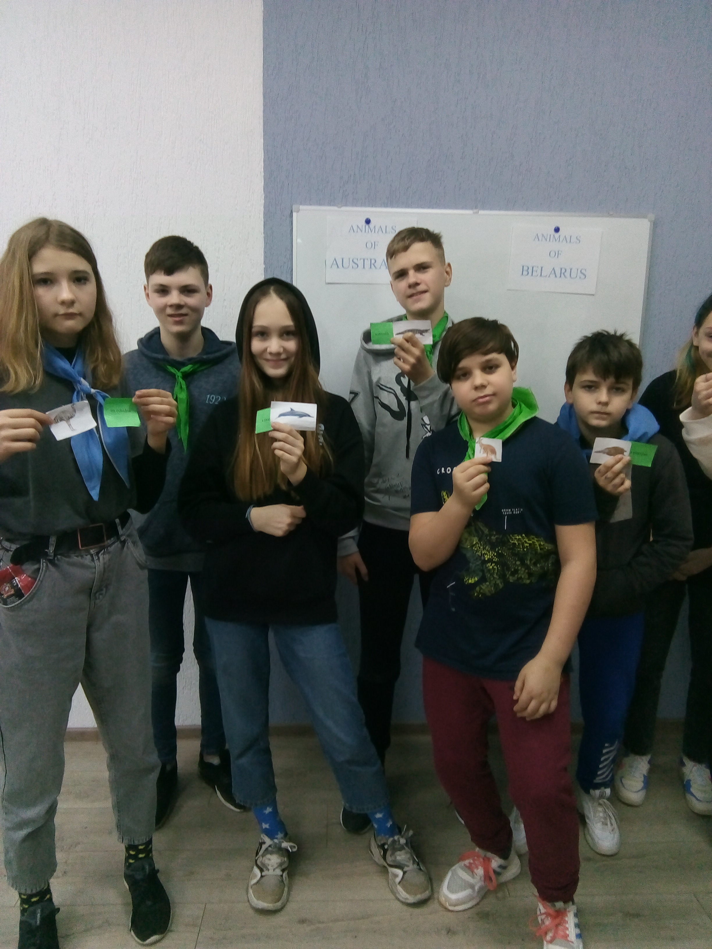 По всему центру разлетелись карточки с картинками и названиями животных двух стран на английском языке. Участникам флешмоба нужно было найти пару: слово и картинку. Так ребята 6 и 7 классов смогли познакомиться с необычным и самобытным животным миром Австралии, в сравнении с нашим привычным миром животных Беларуси.