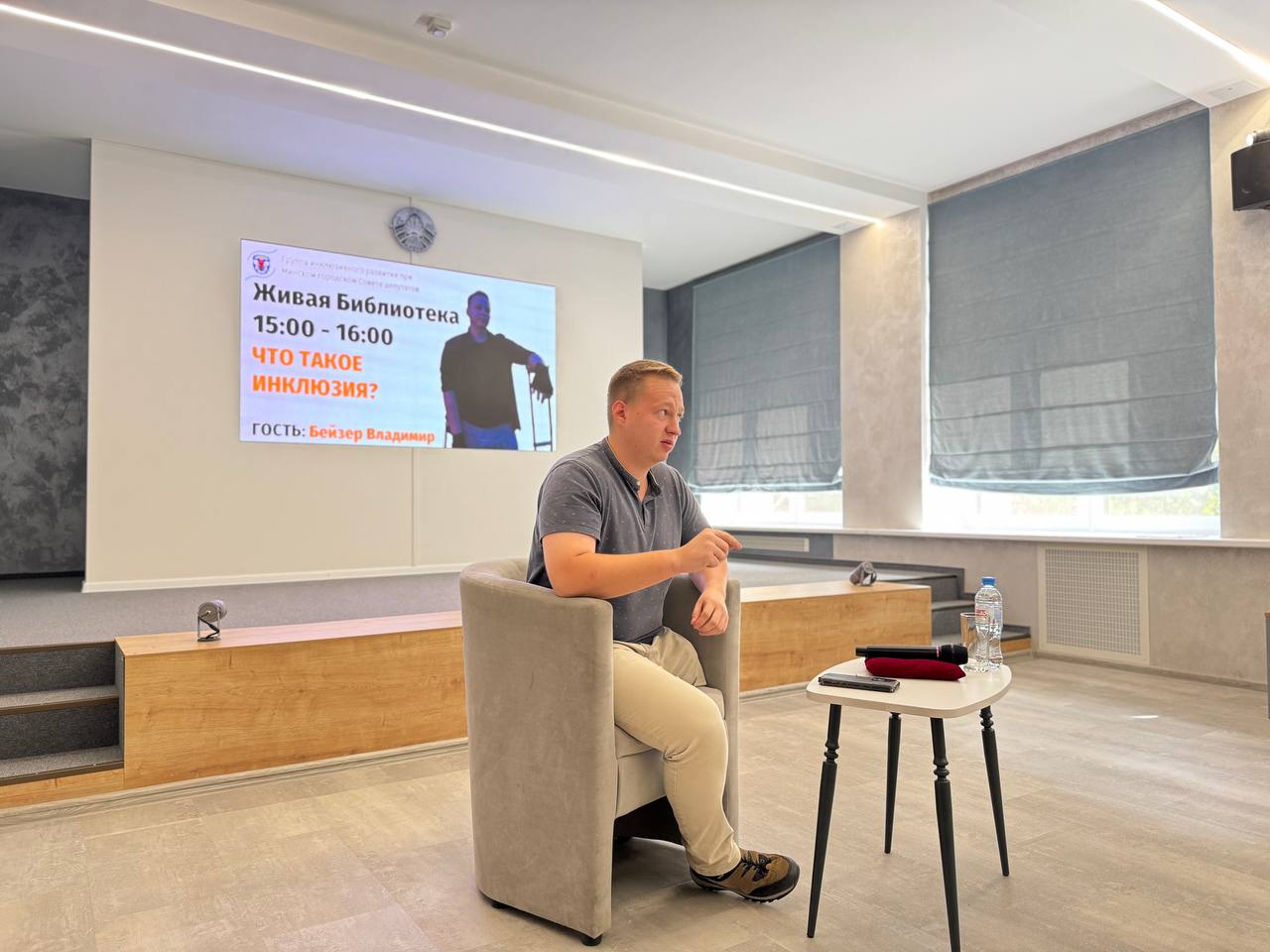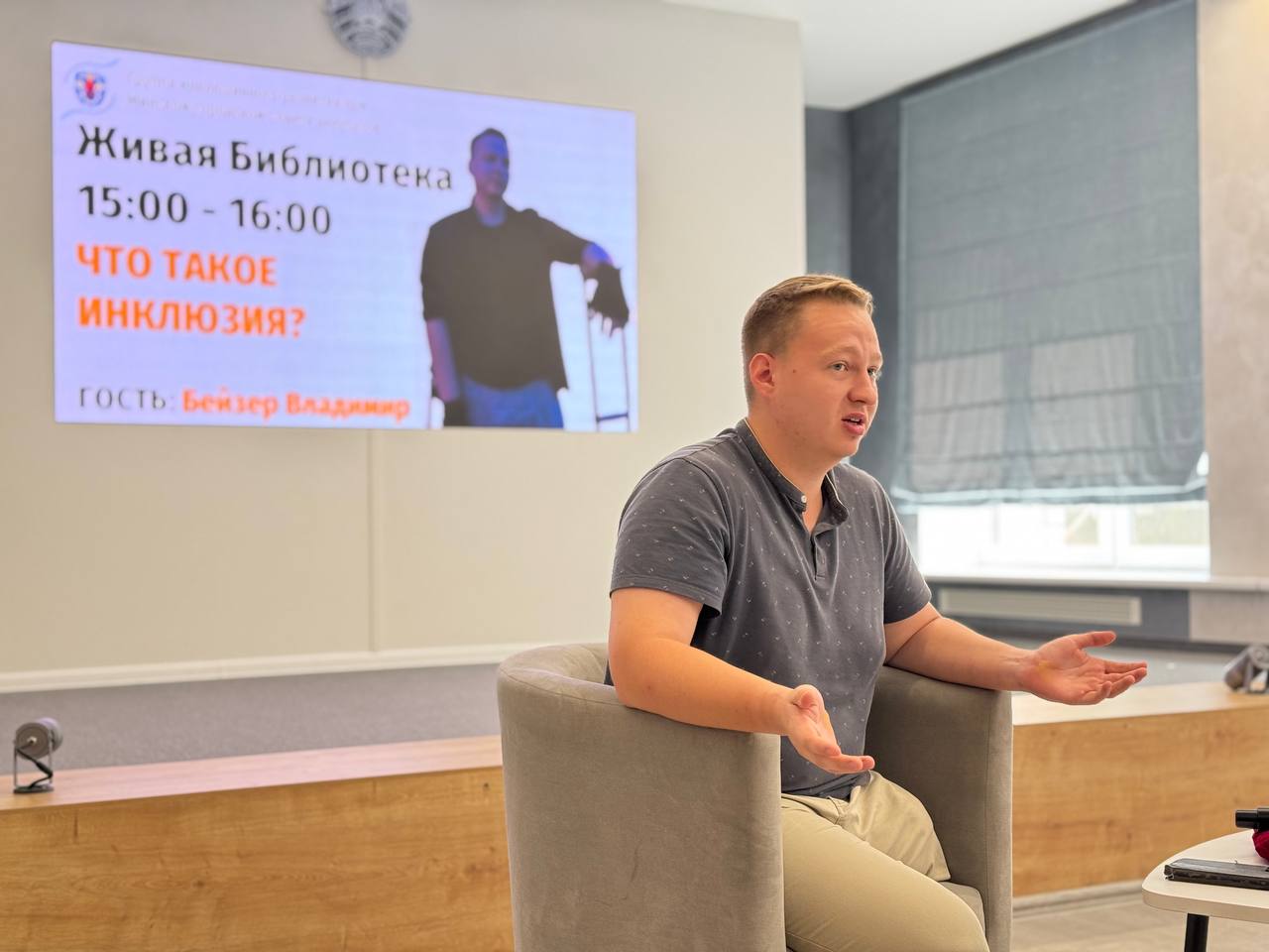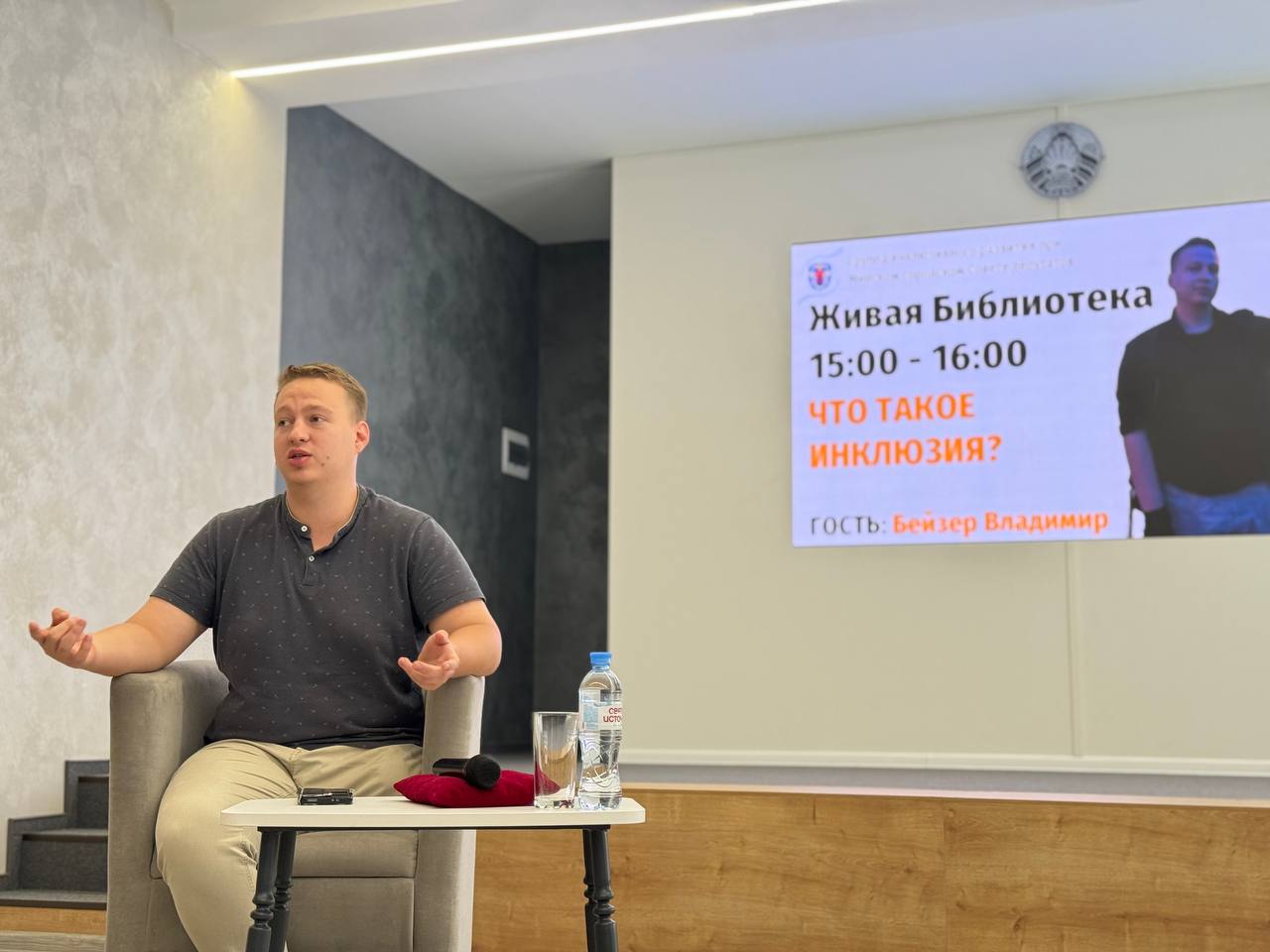 В центре «Лидер» прошла диалоговая площадка в формате живой библиотеки «Что такое инклюзия». Гостем встречи стал Владимир Анатольевич Бейзер – председатель группы инклюзивного развития Молодёжного совета при Минском городском Совете депутатов.