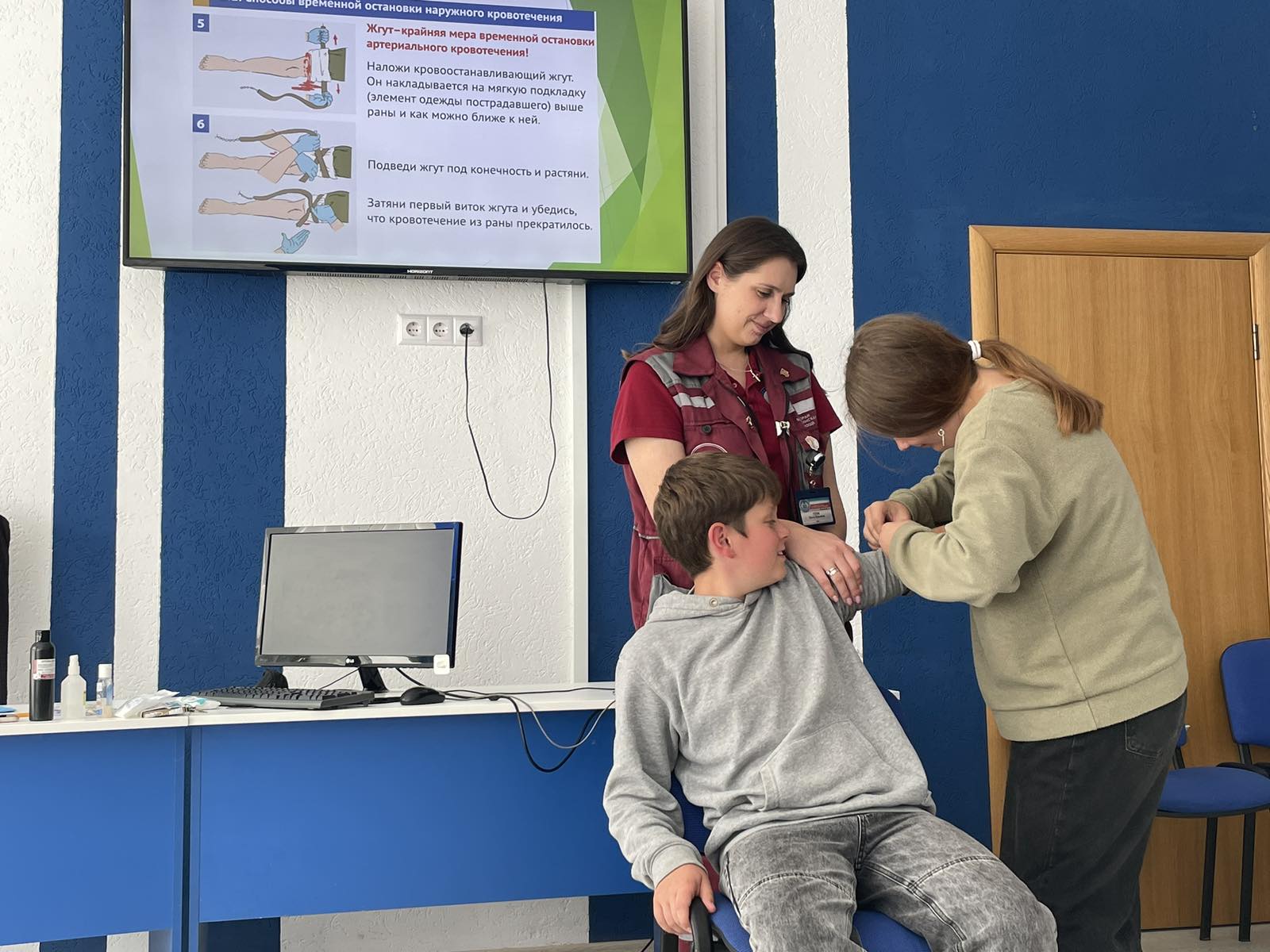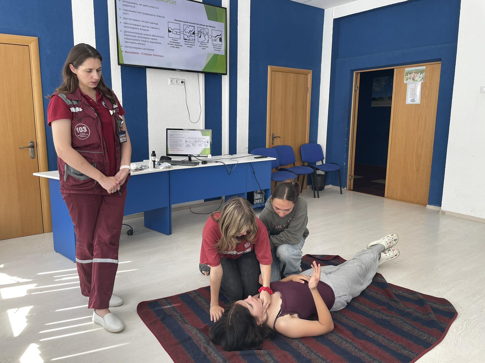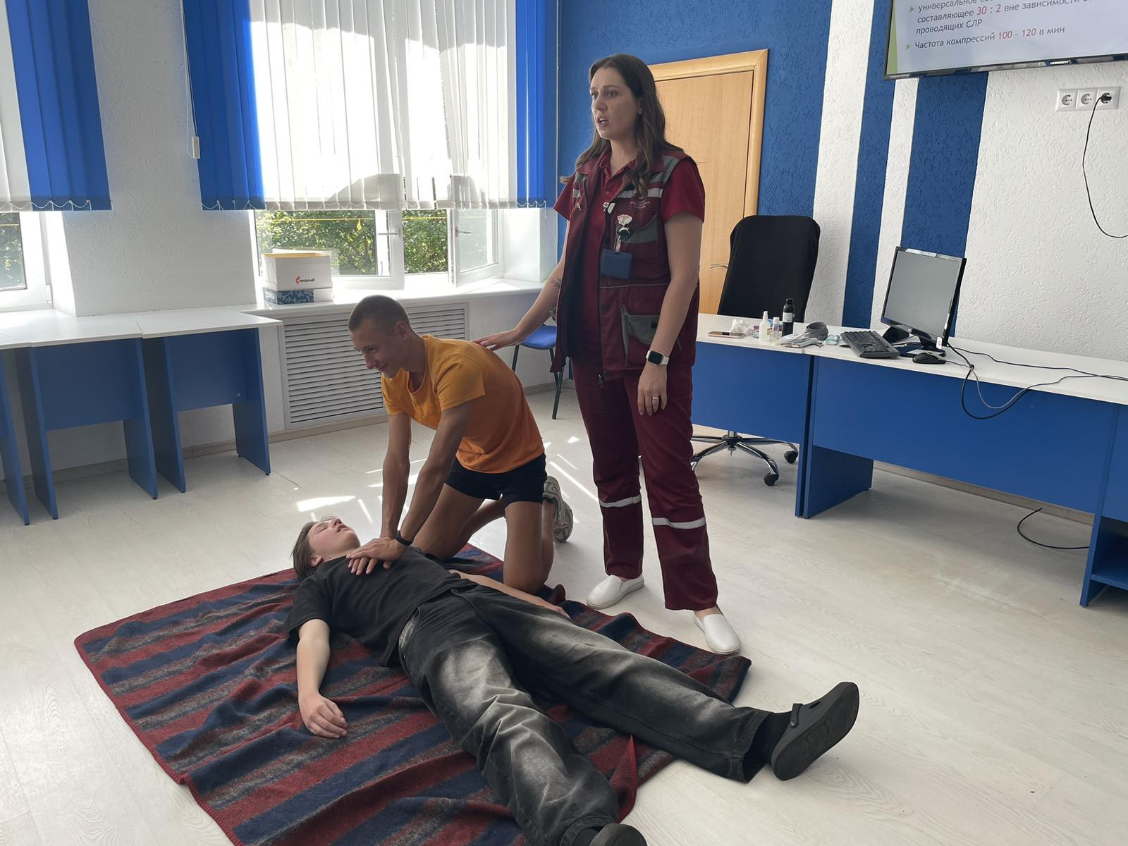 Кроме того, участники семинара отработали практические навыки оказания первой медицинской помощи в формате имитационных упражнений: они демонстрировали приёмы сердечно-лёгочной реанимации, учились останавливать кровотечения, накладывать шины при переломах и выполнять другие важные процедуры под контролем специалиста.