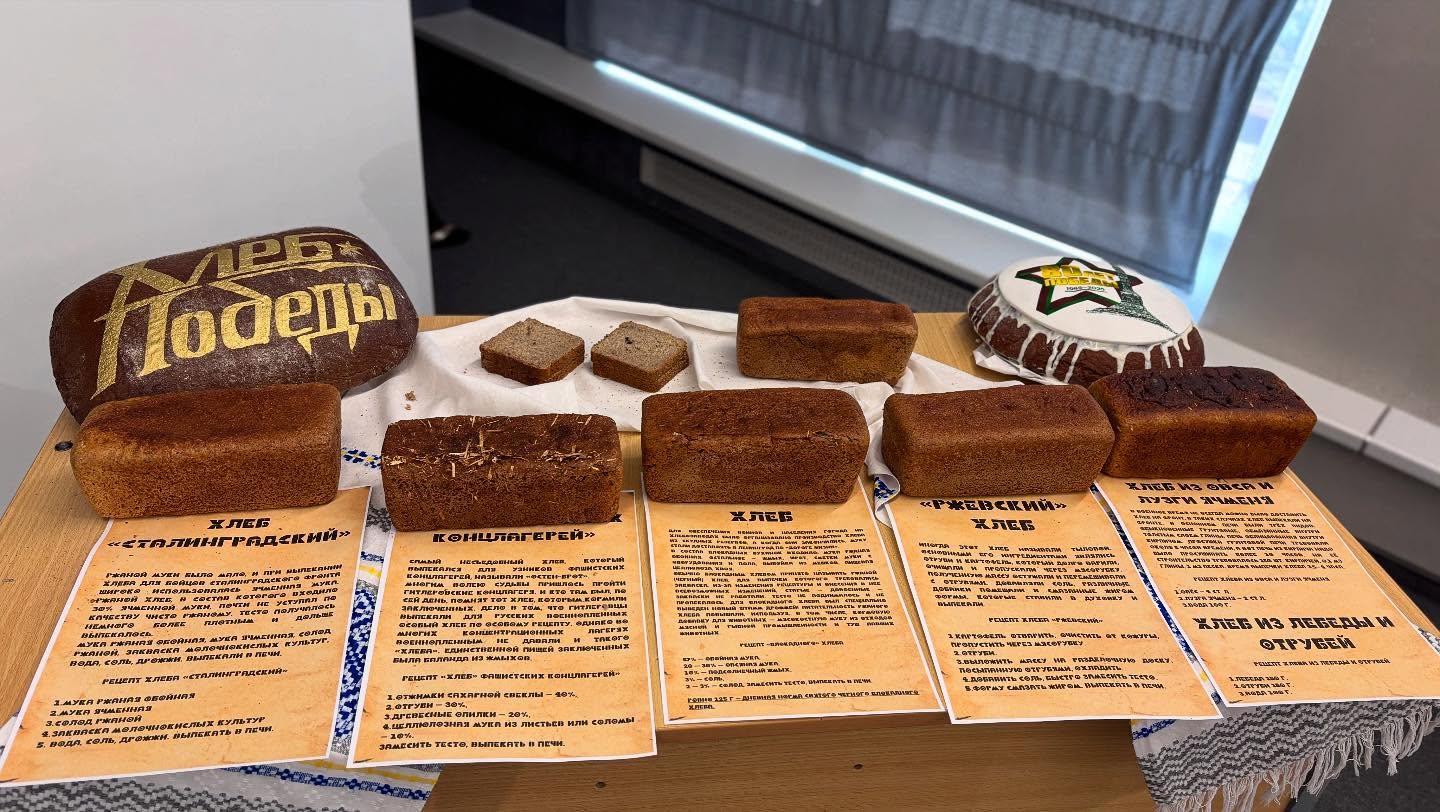 Сотрудники КУП «Минскхлебпром» рассказали о работе хлебозаводов в период Великой Отечественной войны с демонстрацией видеоролика и представили 5 видов хлеба по рецептурам времен войны - «Сталинградский хлеб», «Ржевский хлеб», «Блокадный хлеб», «Хлеб фашистских концлагерей», «Тыловой хлеб», в составе хлеба– солома, лузги ячменя, подсолнечный жмых и даже древесные опилки.