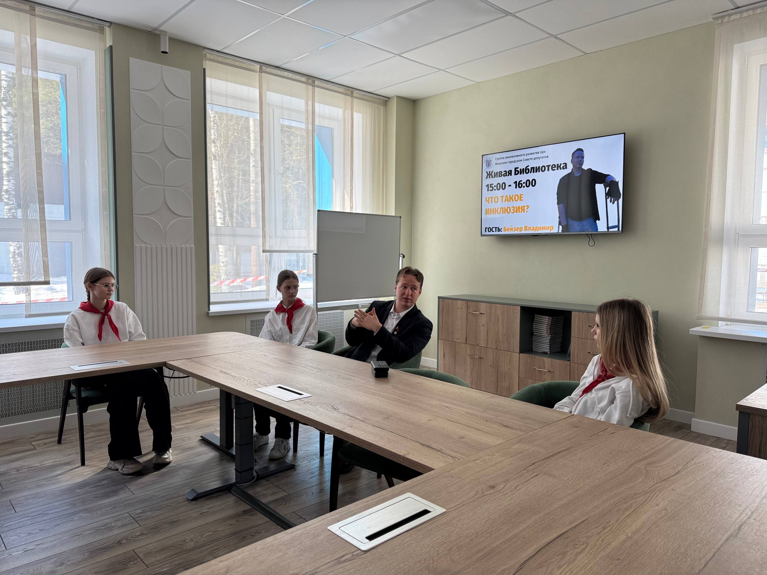В центре «Лидер» прошла диалоговая площадка в формате живой библиотеки «Что такое инклюзия». Гостем встречи стал Владимир Анатольевич Бейзер – председатель группы инклюзивного развития Молодёжного совета при Минском городском Совете депутатов.