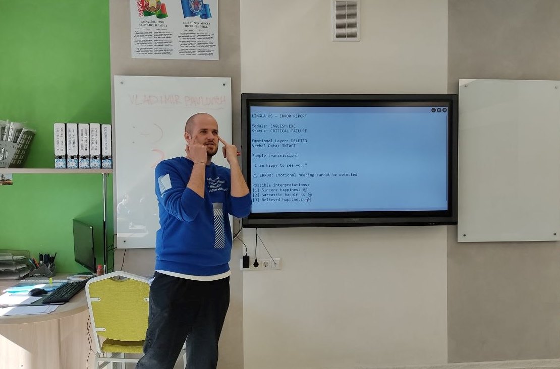 Участники продолжили миссию по восстановлению нейроинтерфейса Lingua OS. Они изучали лексику для описания эмоций, разбирали различия в передаче чувств в русской и англоязычной культурах, выполняли интерактивные упражнения – разыгрывали мини‑диалоги с заданной эмоциональной окраской и озвучивали реакции в разных ситуациях. Ребята работали с аудио‑ и видеоматериалами, определяя эмоции по интонации и контексту, а также создавали короткие тексты, где настроение персонажей передавалось через выбор слов.