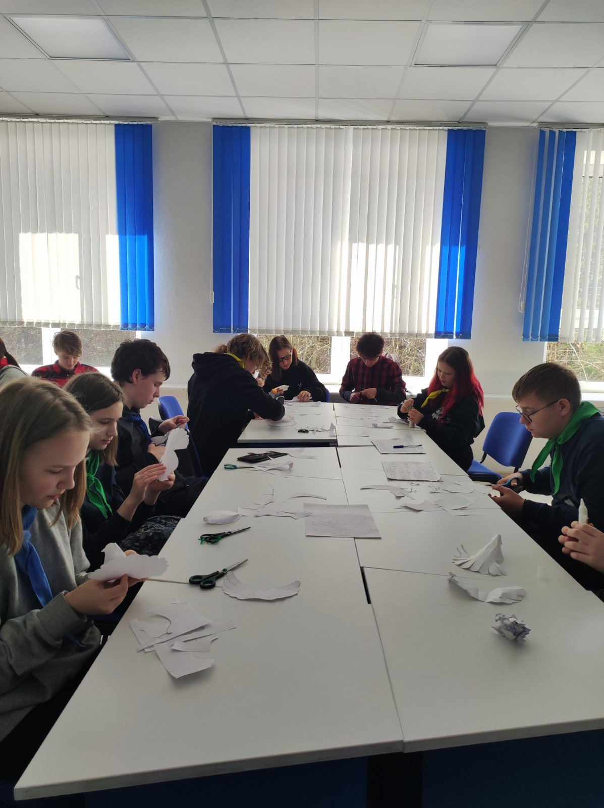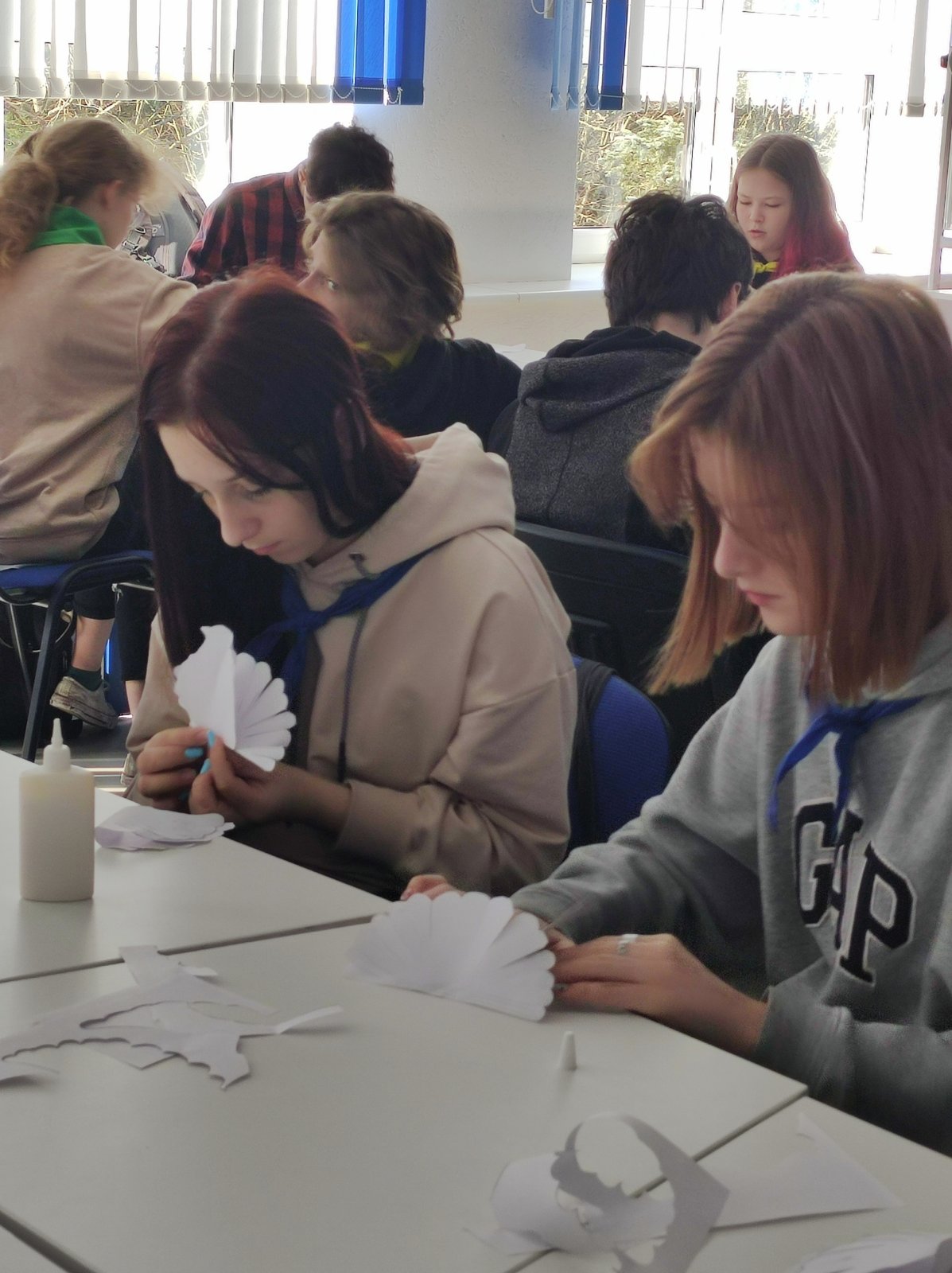 11 апреля в рамках профильной смены для воспитанников прошел мастер-класс, посвященный 9 мая, «Голубь Мира». Еще со времен Древнего Рима символом мира была голубка, несущая в клюве оливковую ветвь. Постепенно во всем мире эта птица стала символом чистоты и верности, любви и доброты. В Беларуси голубя мира используют на праздниках 1 и 9 мая, свадебных церемониях и семейных торжествах.