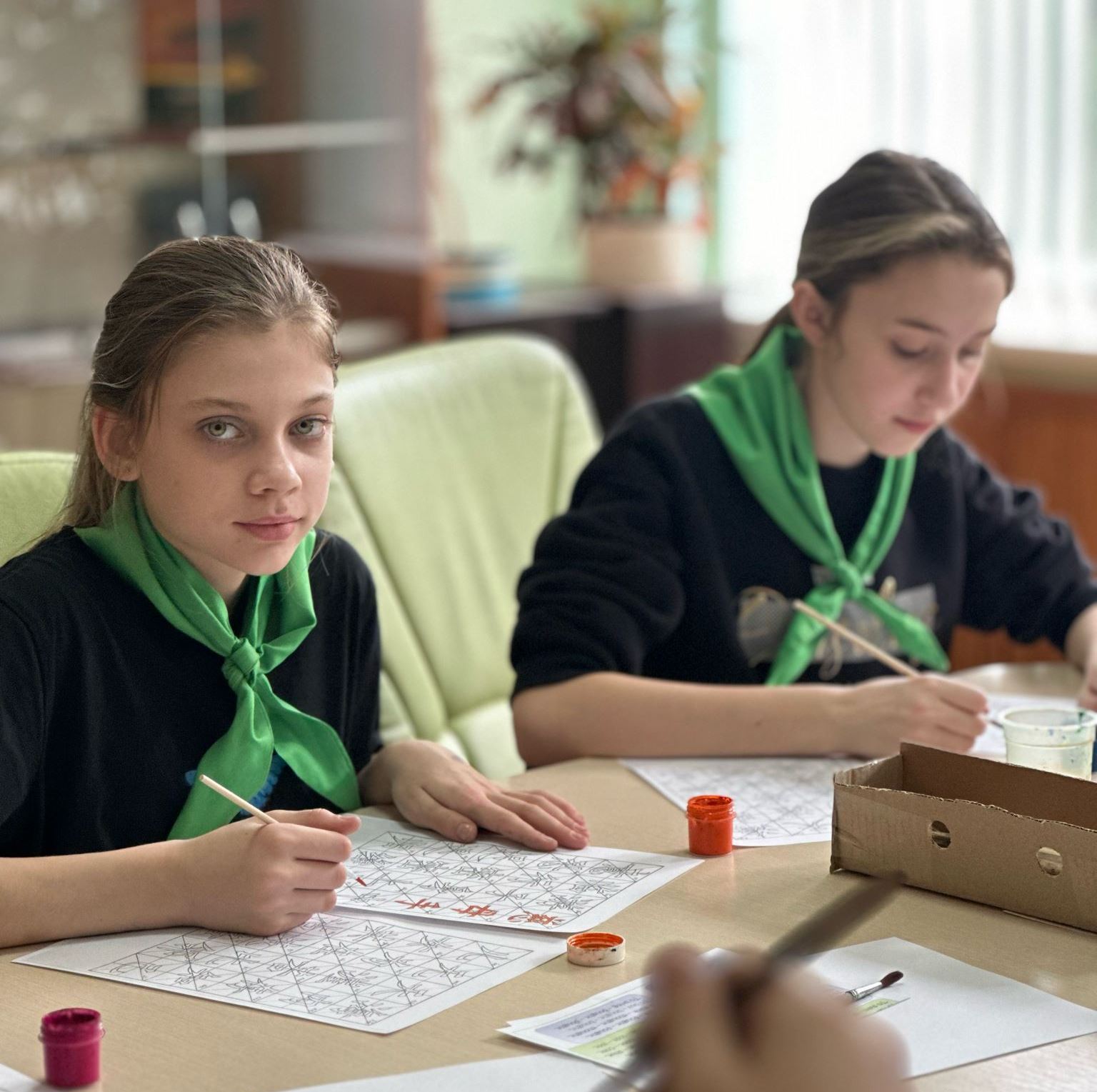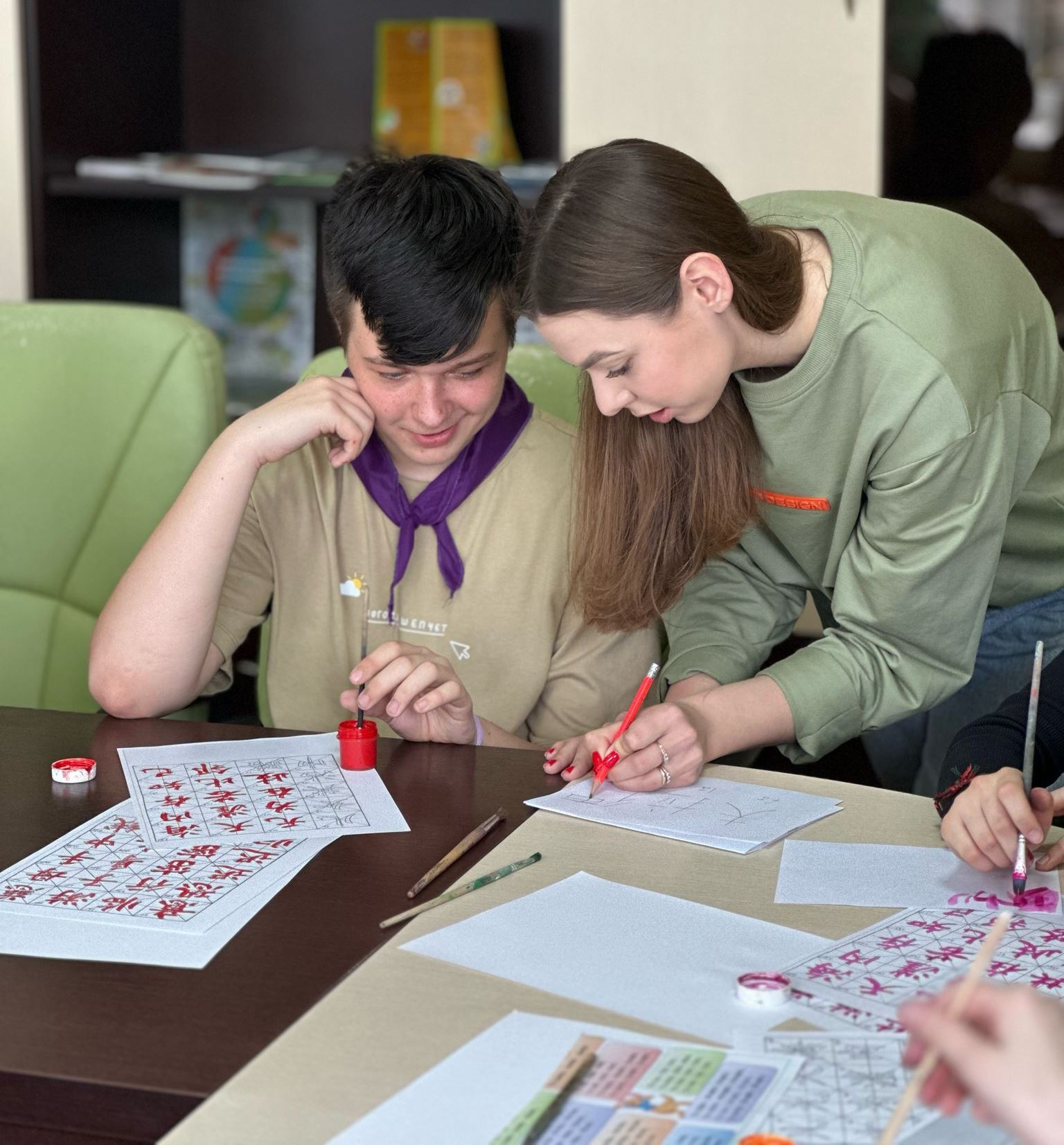 Педагог дополнительного образования Центра дополнительного образования детей и молодёжи «Ветразь» г. Минска Вероника Дмитриевна Лукашевич провела для участников «Лингвистического марафона» мастер-класс «Искусство китайской каллиграфии».