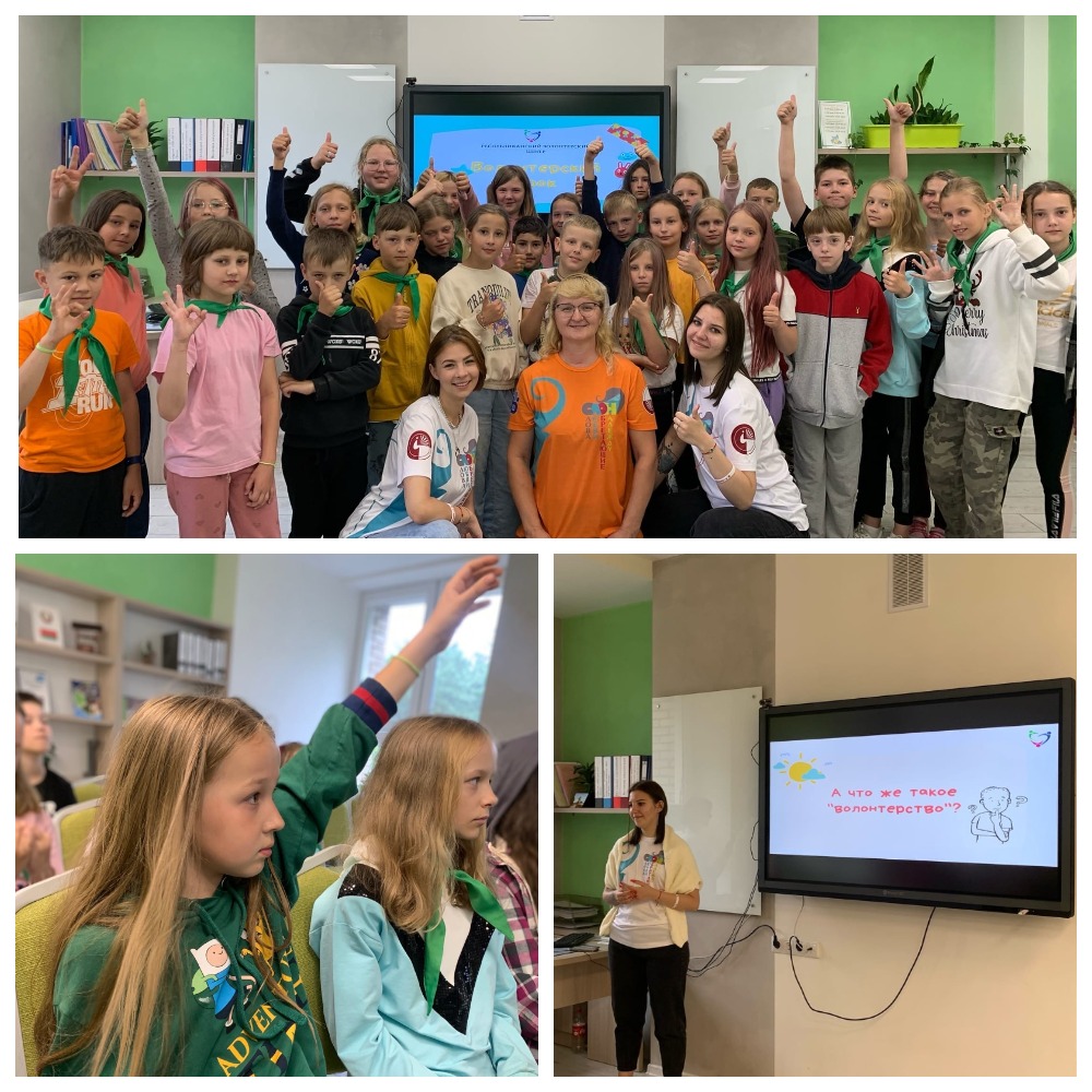 В игровой форме ребята освоили знания о том, кто такие волонтеры, какие бывают виды волонтёрской деятельности, поговорили о роли волонтёров в современном мире.