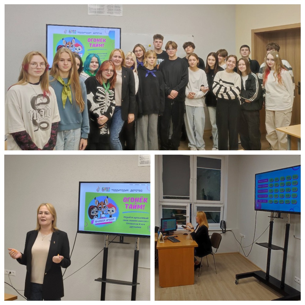 Педагог-организатор отдела культурно-досуговой деятельности Центра дополнительного образования детей и молодёжи «Маяк» г.Минска, председатель Ленинского районного Совета ОО «БРПО» Александра Владимировна Войтенко провела для участников смены развлекательно-познавательную игровую программу «Огонёк Тайм».