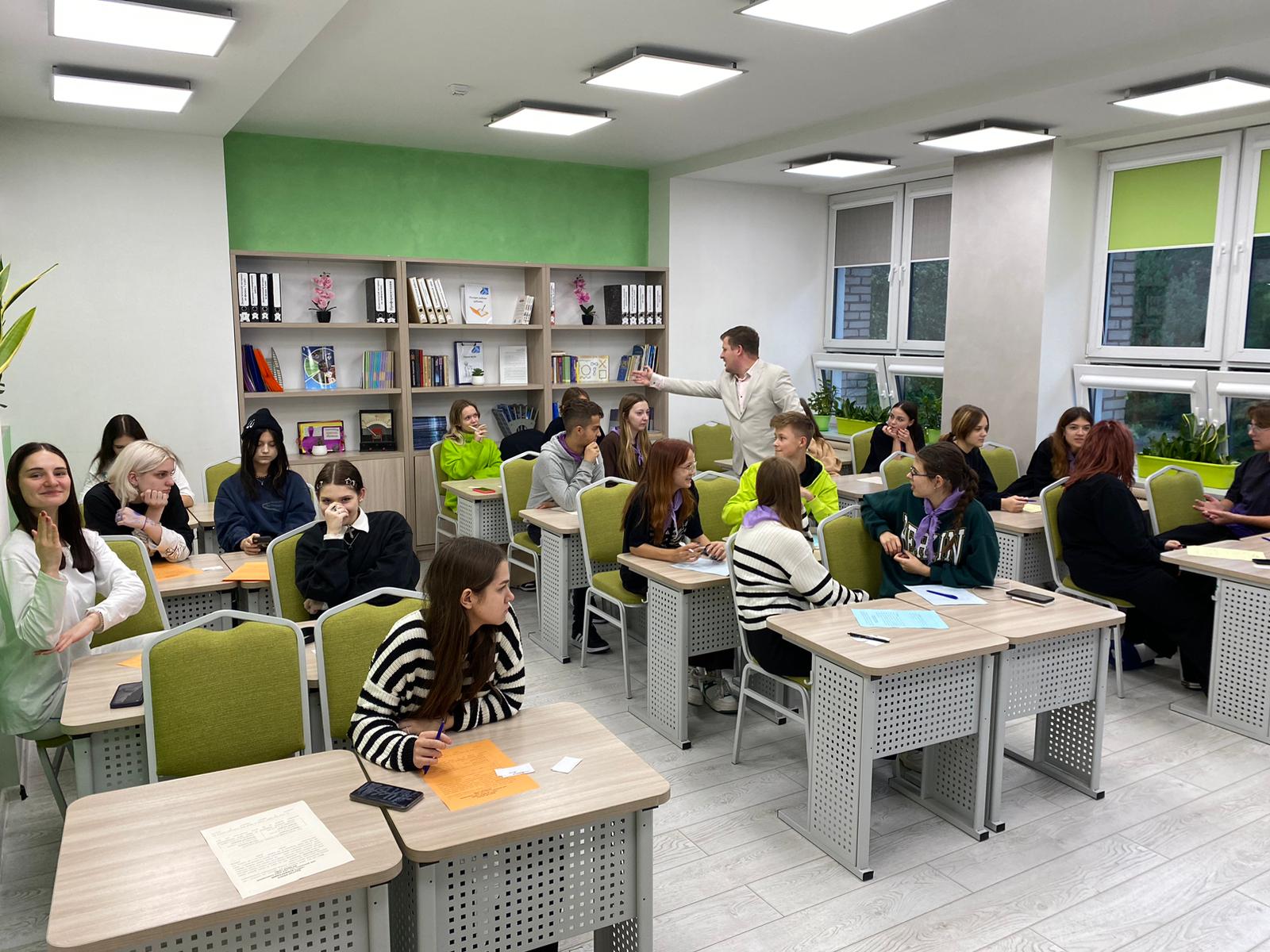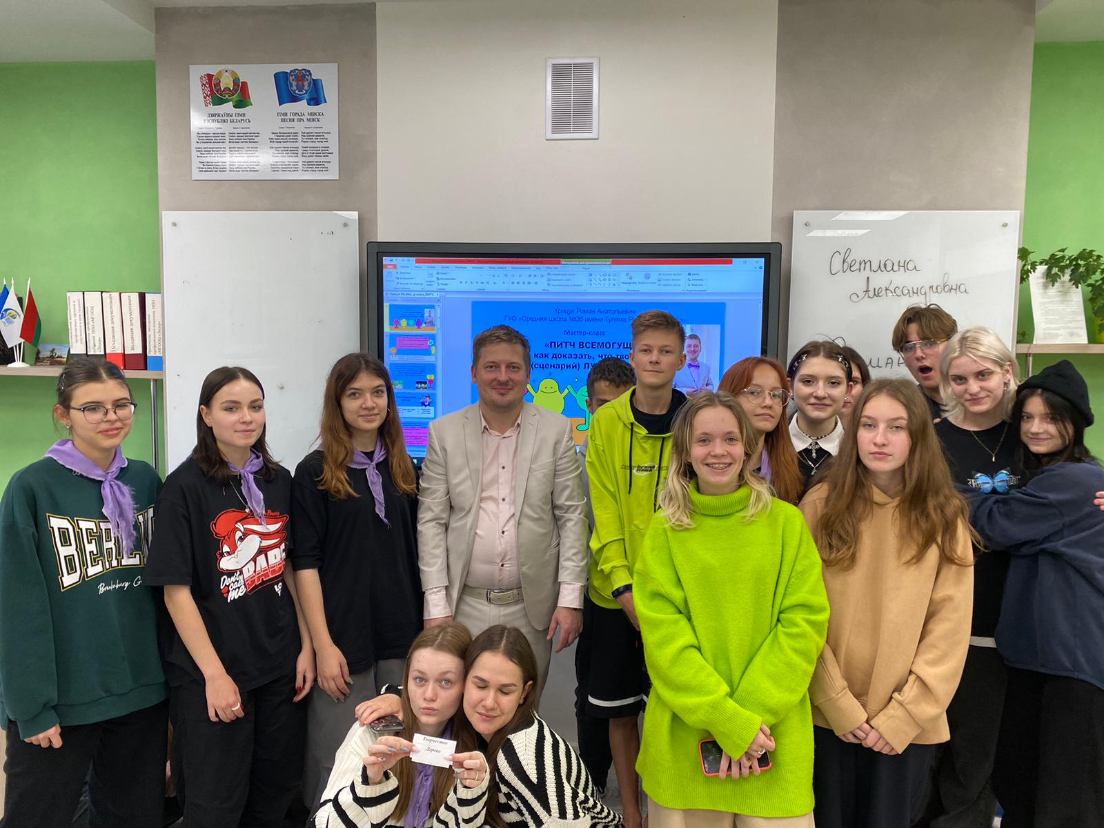 Учитель истории ГУО «Средняя школа № 36 г. Минска» Октябрьского района Роман Анатольевич Крицук провёл для учащихся центра «Лидер» мастер-класс «Питч всемогущий: Как доказать, что твой сценарий лучший».