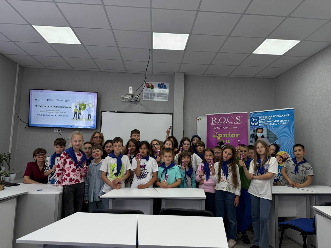 В центре «Лидер» в рамках волонтёрского проекта Минского городского Совета депутатов «Марафон здоровья для столицы» прошёл круглый стол «Здоровье-это ценный ресурс» совместно с главным врачом УЗ «Минский городской детский клинический центр стоматологии», депутатом Мингорсовета Евгений Борисовной Коршиковой и её сотрудниками. Гости встречи разъяснили ребятам правила рациональной гигиены, поговорили о сбалансированном, полноценном питании и важности соблюдения режима дня, физической активности, провели интерактивную игру-викторину и ответили на многочисленные вопросы участников.