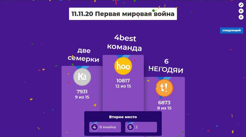 Проявив недюжинную смекалку, быстроту реакции, показав знания по всемирной истории и истории Беларуси, в финал вышли команды 4, 6, 7 и 8 групп. Финальная встреча состоится в понедельник, 16.11., на интеллектуальной игре «История продолжается сегодня».