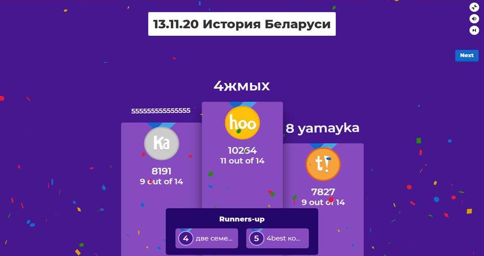На протяжении первой учебной недели ребята 9-10 классов принимали участие в интеллектуальном марафоне «Герои новейшего времени», при проведении которого была использована интерактивная платформа Kahoot. Участники на собственном примере ещё раз убедились, что интернет можно и нужно использовать в обучающих целях.