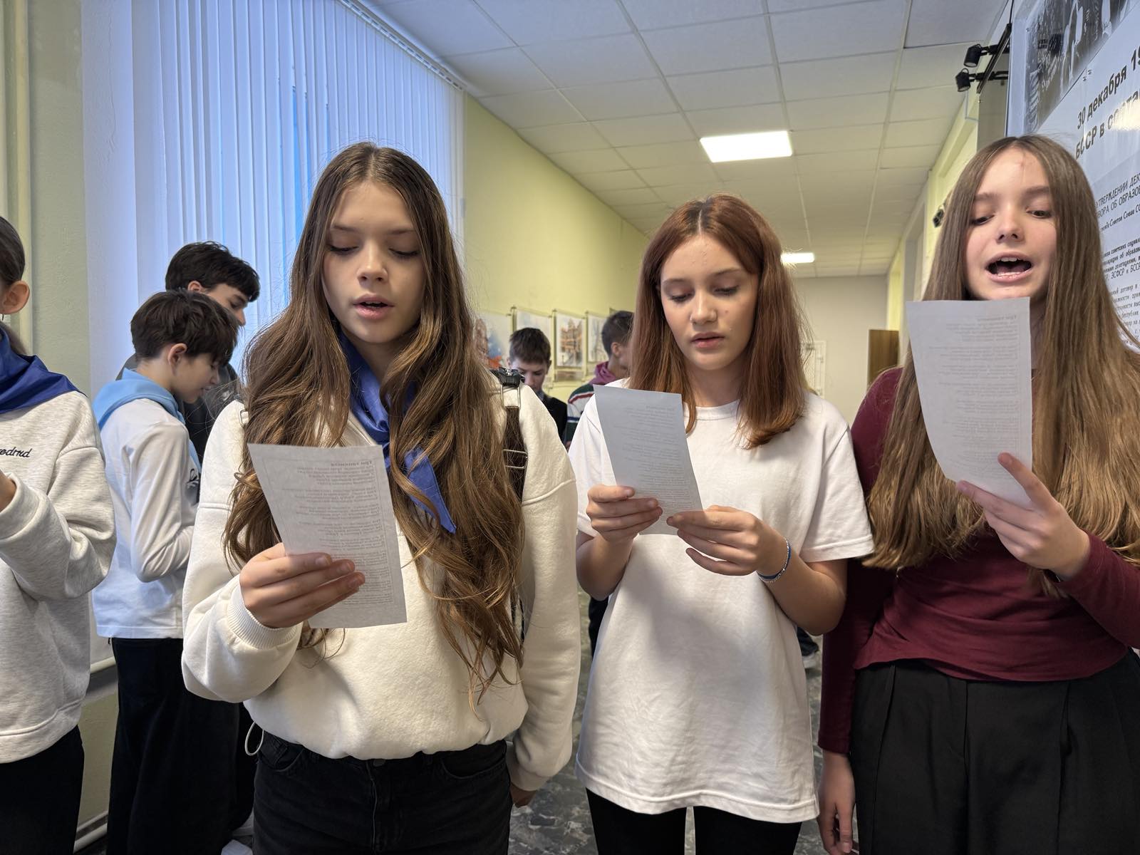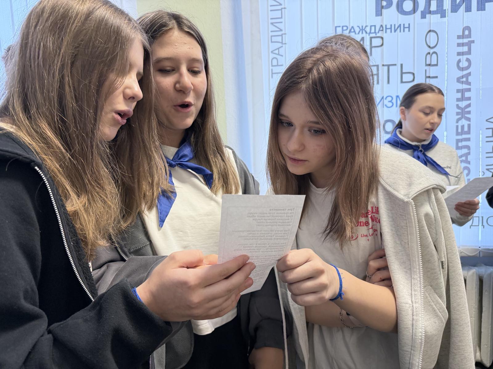 В перерывах между учебными занятиями ребята с воодушевлением слушали и подпевали знаковым композициям, среди которых прозвучали, к примеру, «Тёмная ночь» - лирическая песня, ставшая символом надежды и верности в годы войны, «День Победы» - торжественный гимн, объединяющий поколения, «Катюша» - легендарная песня, знакомая каждому, которая в военные годы стала своеобразным музыкальным талисманом, «Синий платочек» - душевный вальс, звучавший на фронтовых концертах и согревавший сердца солдат, и многие другие.