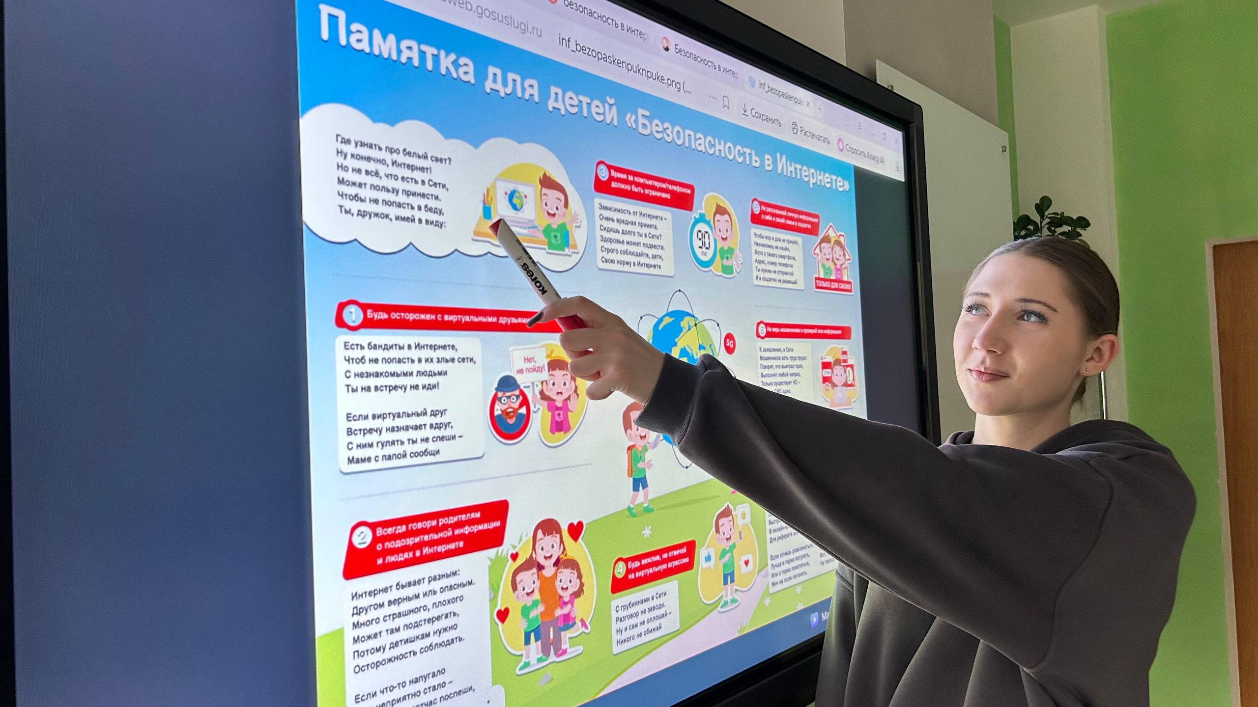 В ходе занятий школьники узнали, как защищать личные данные, реагировать на случаи кибербуллинга, отличать надёжные источники информации от фейков и соблюдать сетевой этикет. Дети активно делились собственным опытом, задавали вопросы и предлагали идеи, как донести правила безопасности до младших школьников.