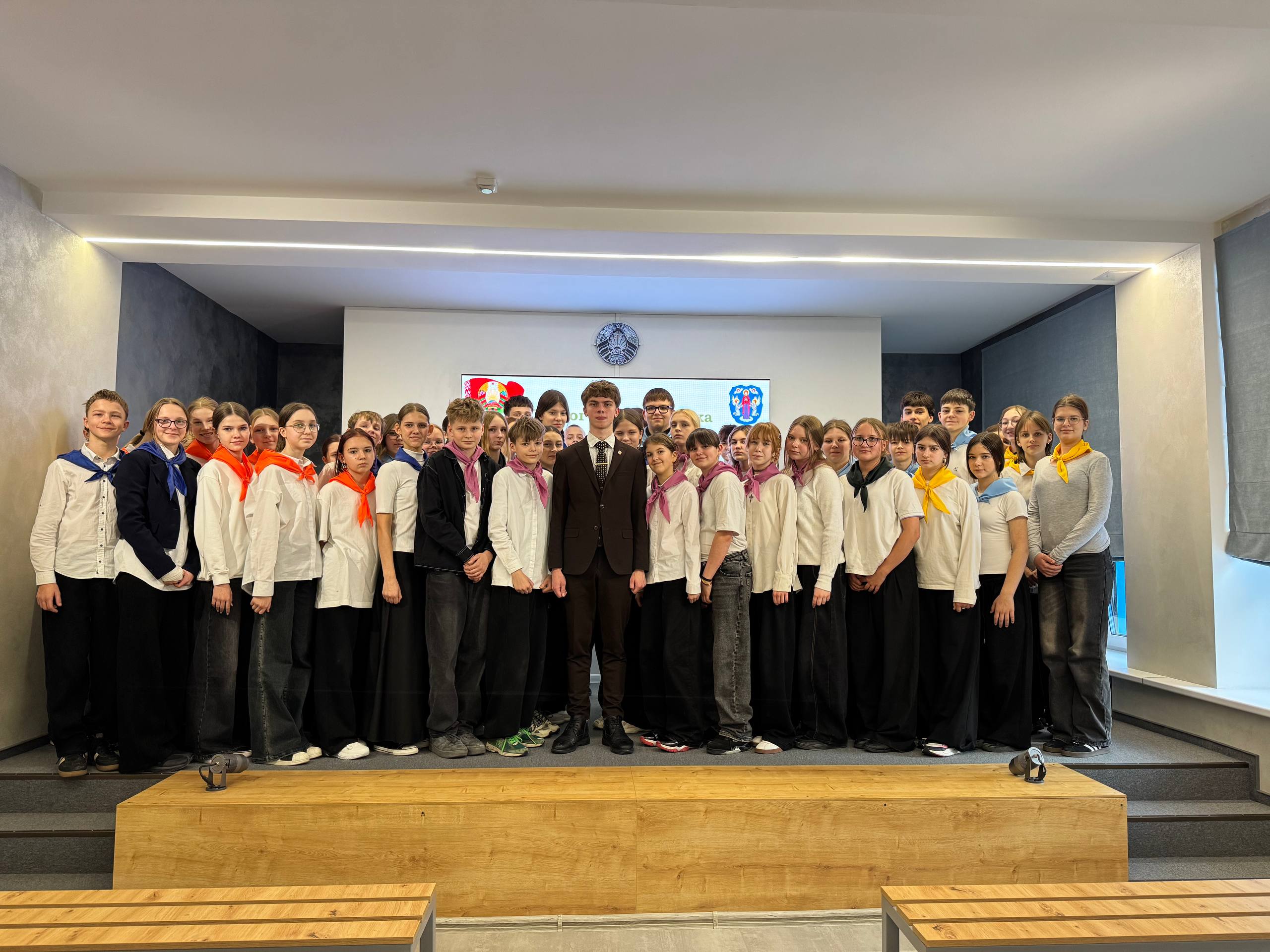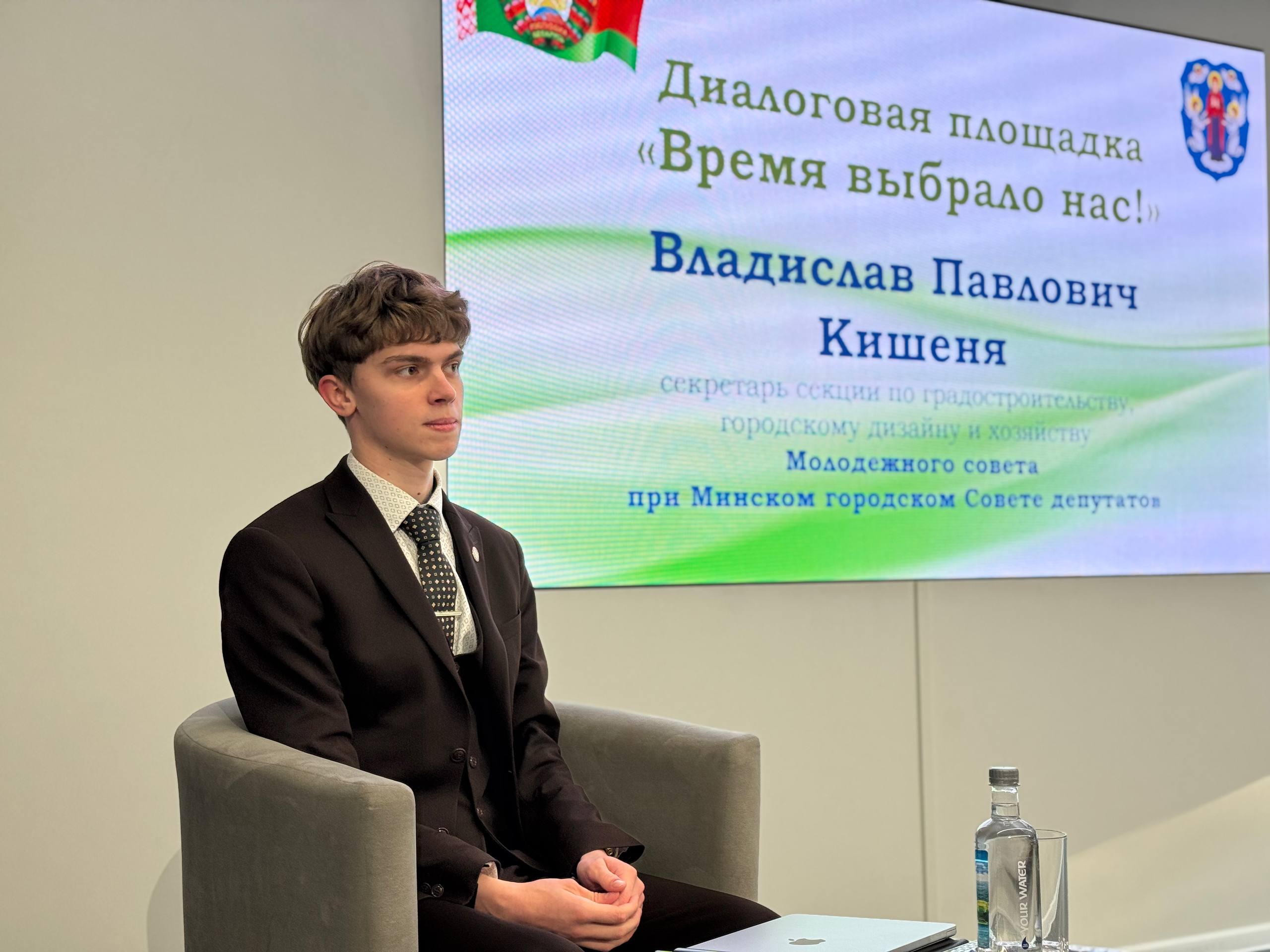 В рамках тематической смены «История нашей Победы» в центре «Лидер» состоялась диалоговая площадка «Время выбрало нас!», собравшая активных, инициативных и творческих учащихся школ и гимназий Минска. Гостем мероприятия стал Владислав Павлович Кишеня – секретарь секции по градостроительству, городской дизайну и хозяйству Молодёжного совета при Минском городском Совете депутатов.