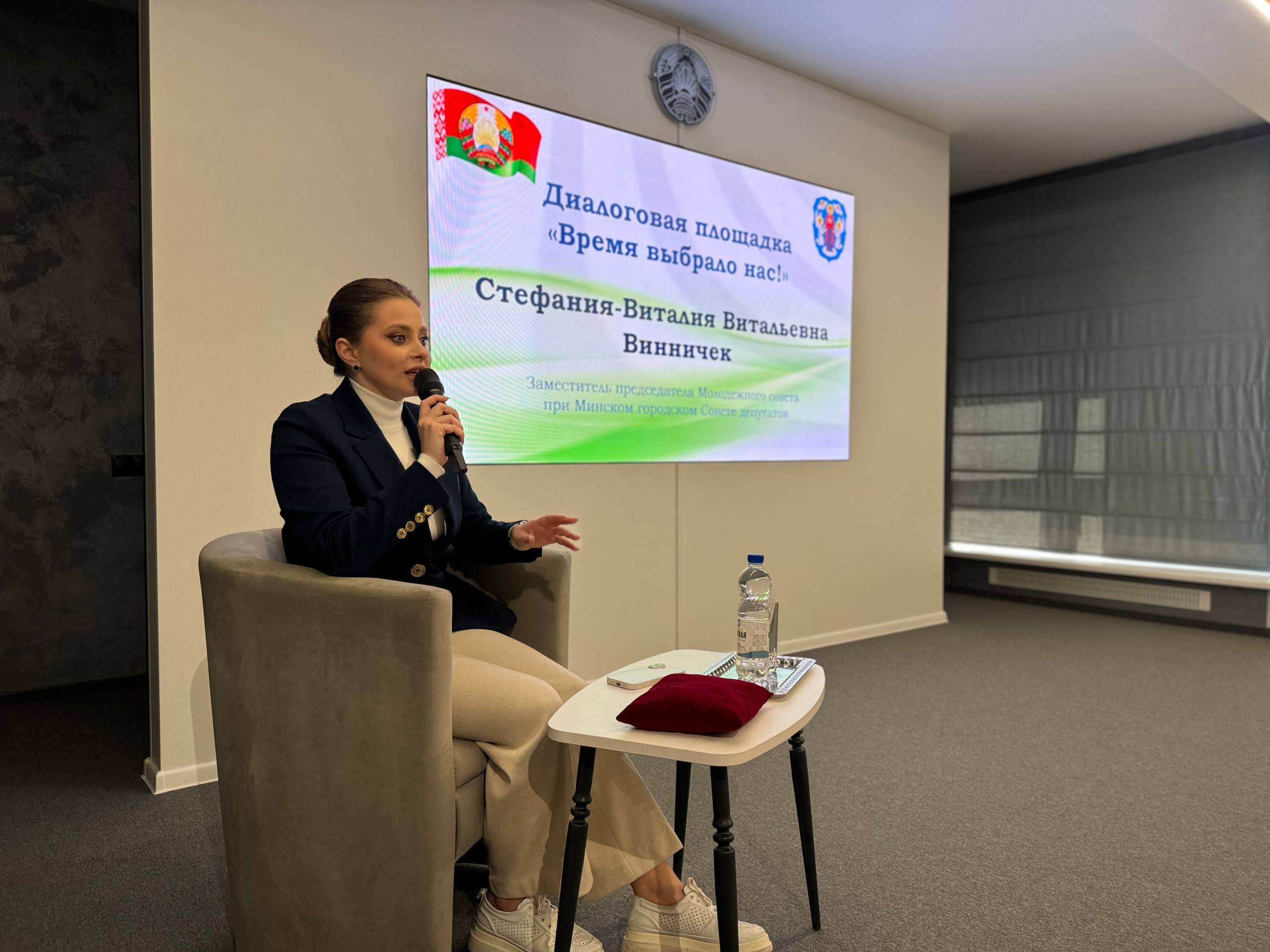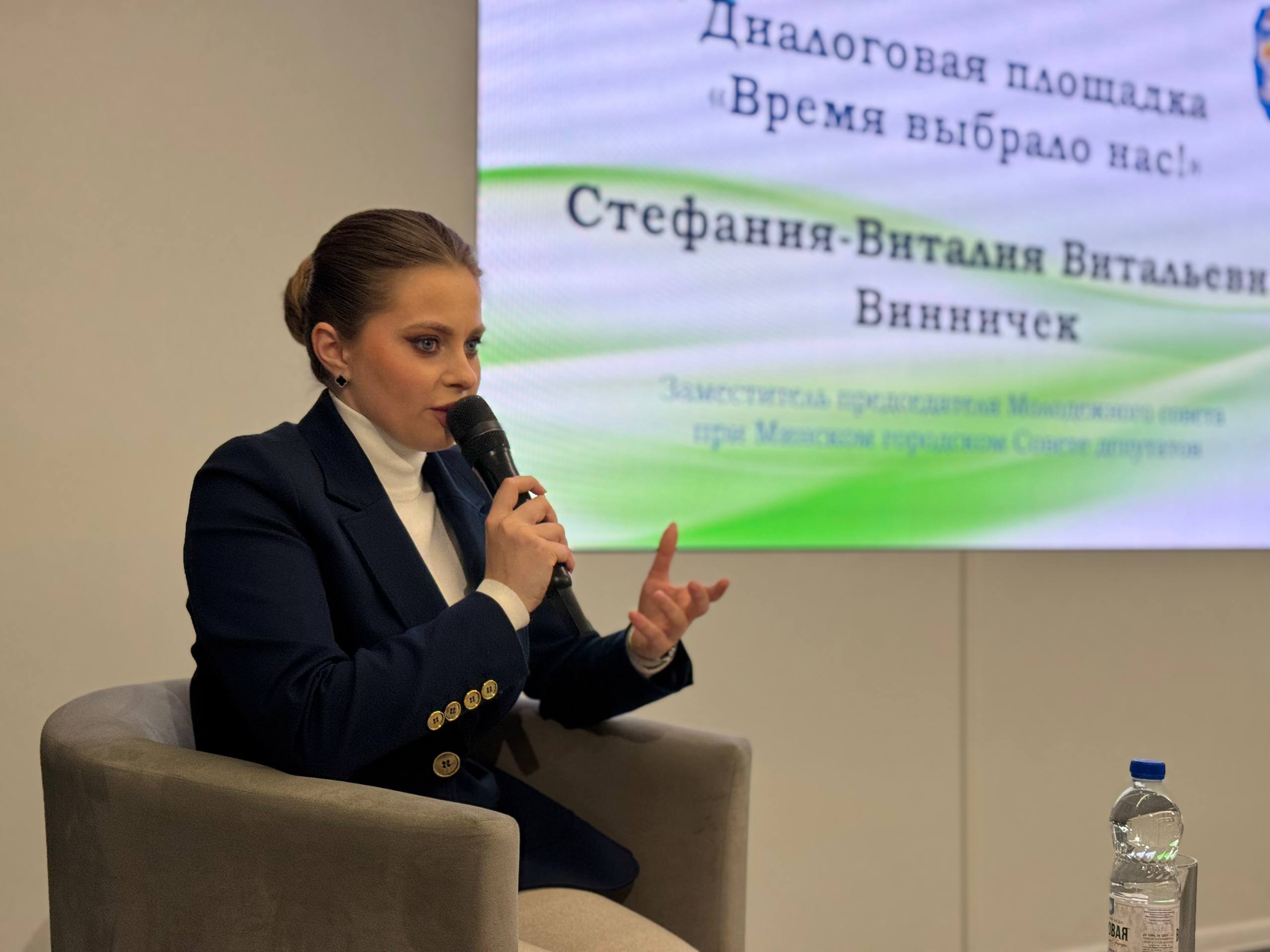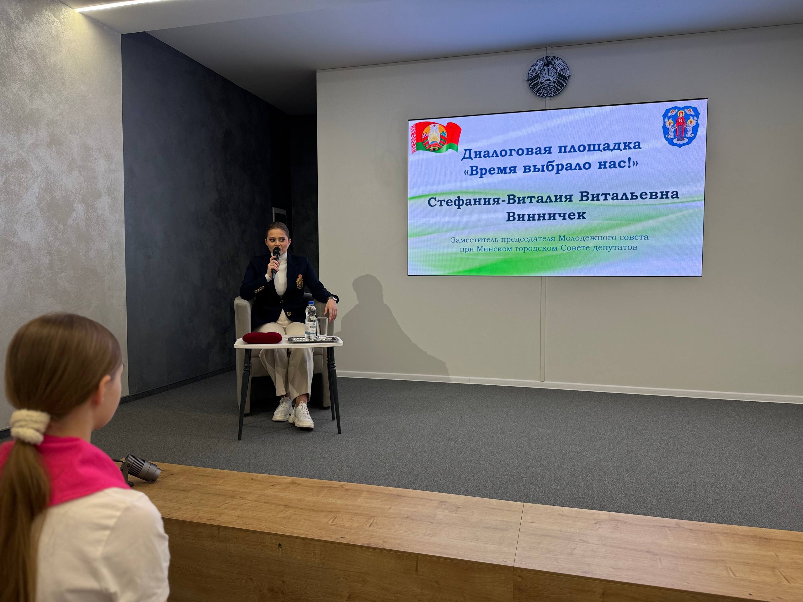 В рамках смены «Мир в объективе» в центре «Лидер» состоялась диалоговая площадка «Время выбрало нас!». Участники встретились с Стефанией‑Виталией Витальевной Винничек – телеведущей, корреспондентом, блогером, юристом и заместителем председателя Молодёжного совета при Минском городском Совете депутатов.