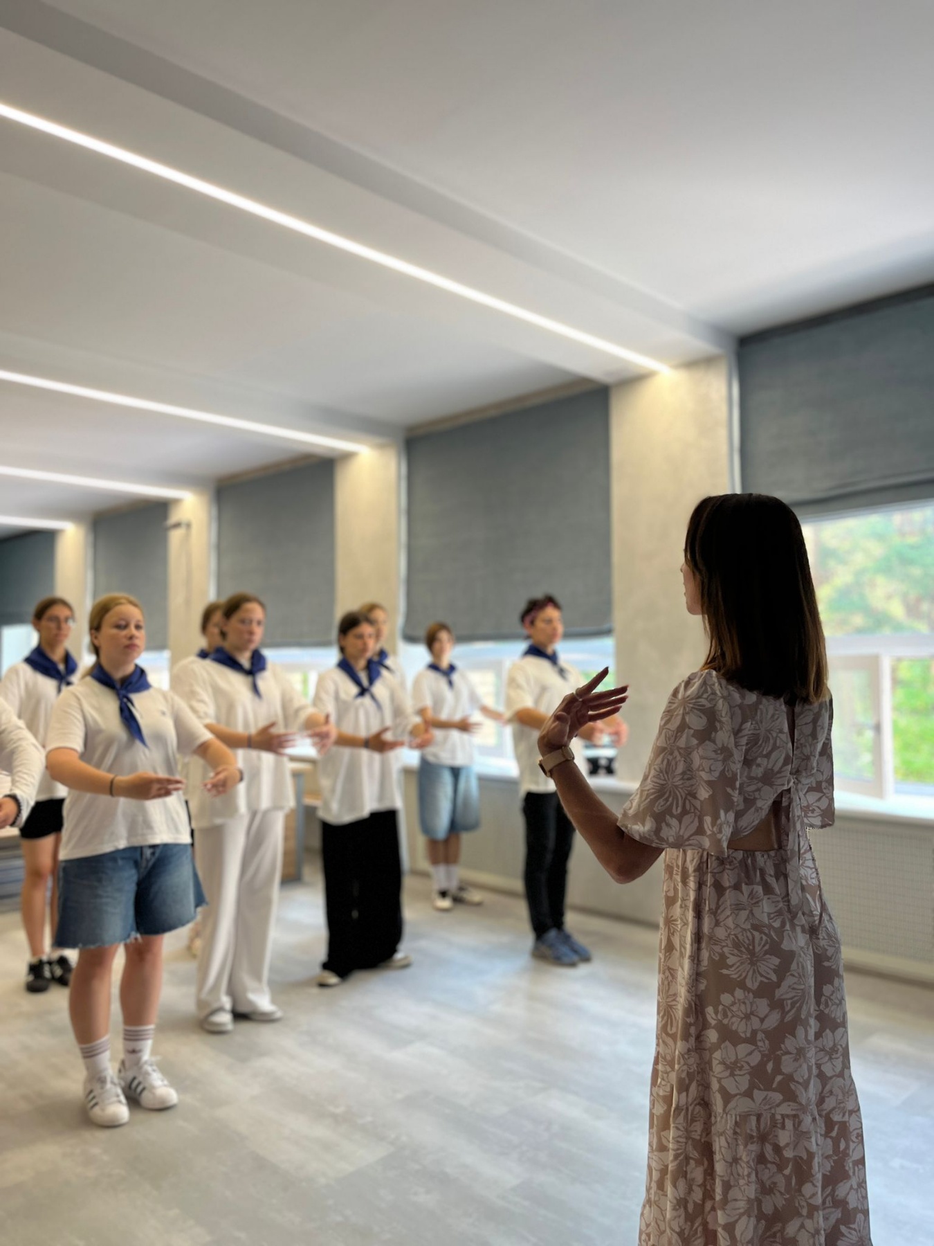 Надежда Ивановна рассказала о своей творческой и профессиональной деятельности, о театре, о различных направлениях в хореографии, а также предложила ребятам попробовать свои силы в исполнении азов классического балета.