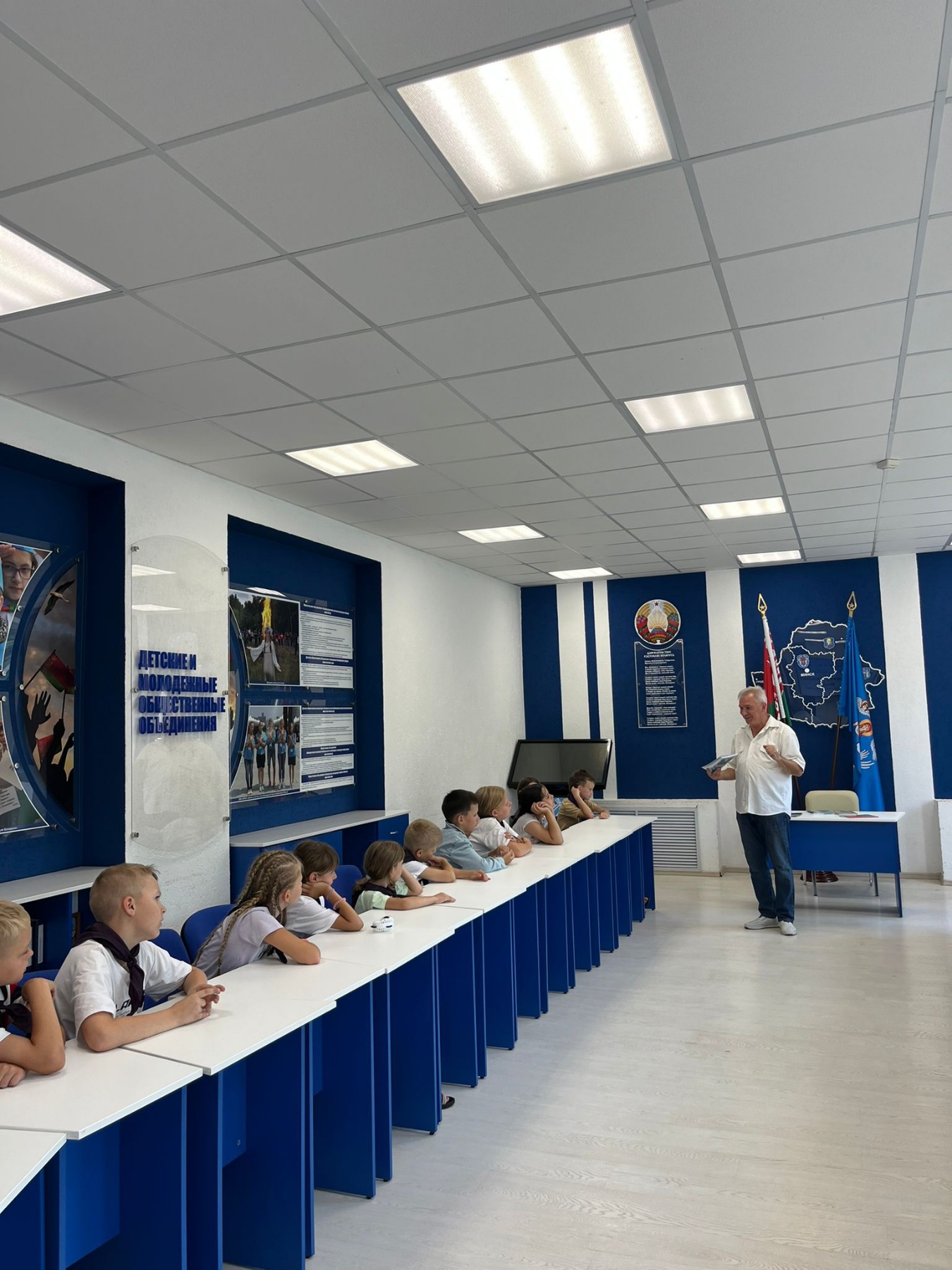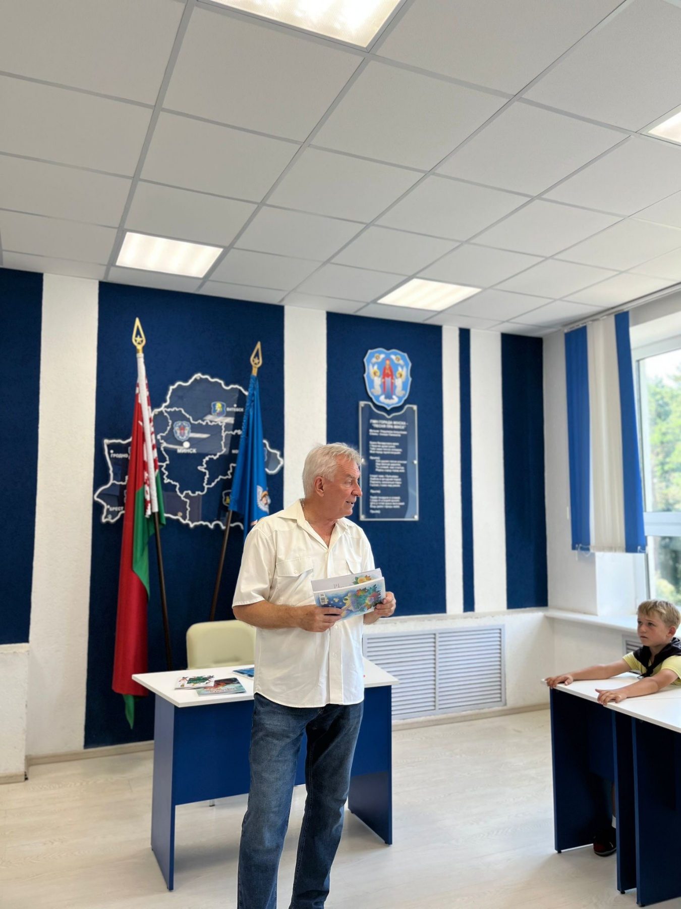 В гости к ребятам самого младшего отряда приехал Владимир Минович Мозго – автор книг и популярных песен, председатель секции детской литературы Союза писателей Беларуси, обладатель медали Франциска Скорины, лауреат множества литературных премий и конкурсов.