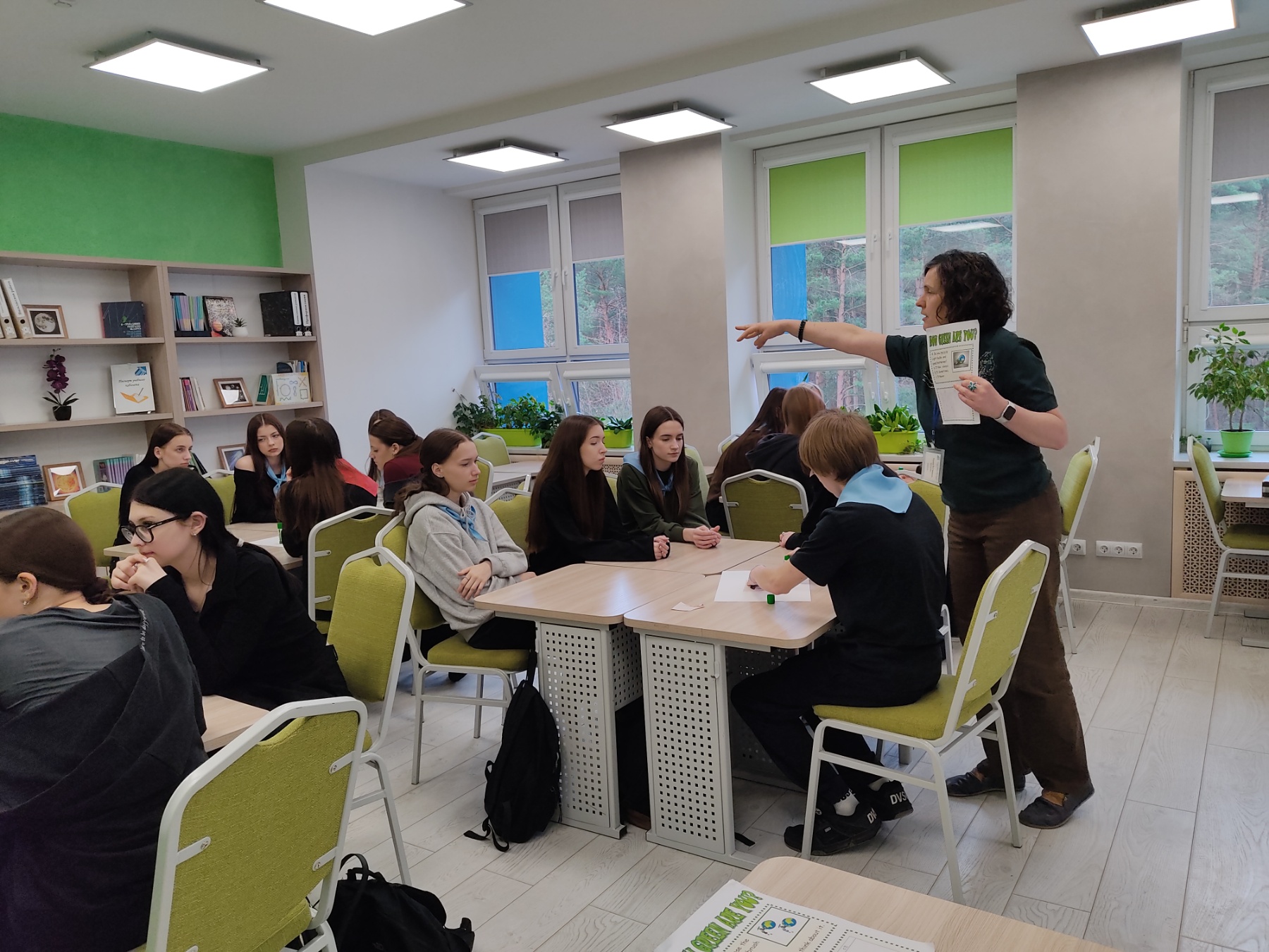 Во время «Экологических переменок» школьники прошли быстрый тест из 10 вопросов о повседневных привычках: выключают ли воду при чистке зубов, берут ли многоразовую бутылку, убирают ли мусор на природе.