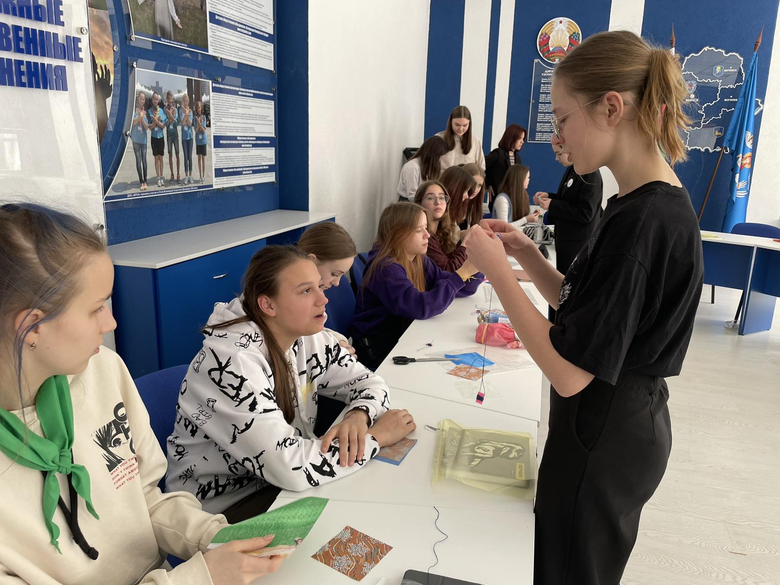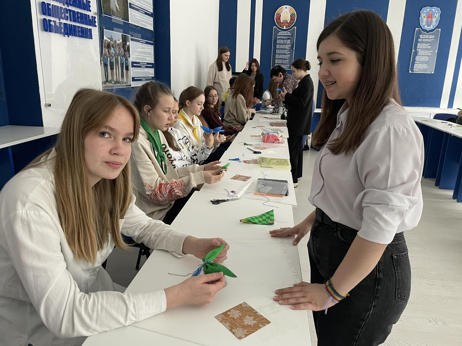 18 апреля в рамках обмена опытом и с целью популяризации народных традиций педагог дополнительного образования средней школы №94 города Минска и руководитель объединения по интересам «В гостях у Куклы» Эрика Грищенко провела мастер-класс по изготовлению народной куклы-мотанки «Матылёк» для учащихся смены «Мир словА и словО в мире».