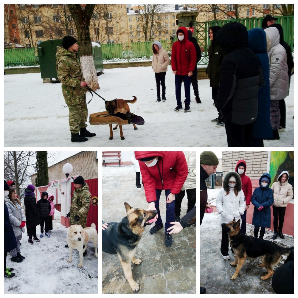 Неподдельный интерес у ребят вызвала также встреча со служебными собаками и рассказ кинологов о специальной подготовке и службе четверолапых профессионалов, а так же демонстрация навыков и умений питомцев войсковой части 5448.