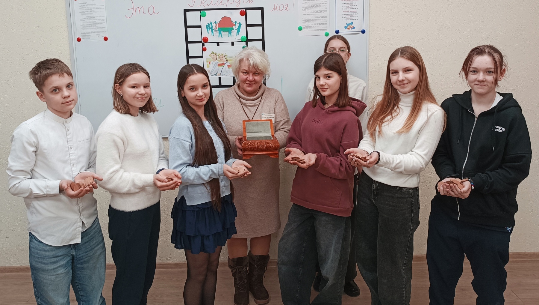 В рамках тематической смены «Время выбрало нас!» 21 января кураторы провели цикл мероприятий, где обсудили с учащимися героические события в истории Беларуси, достижения страны в области политики, экономики, культуры и спорта, познакомились с белорусскими традициями, обычаями, обрядами и праздниками.