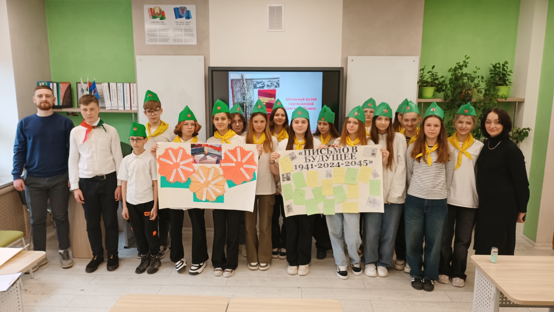 Ребята приняли участие в заочной экскурсии музея партизанской бригады «Пламя» и внесли свою лепту в создание ещё одной странички истории этого музея: написали письмо в будущее, создали стихотворный портрет войны, научились создавать своими руками пилотки.