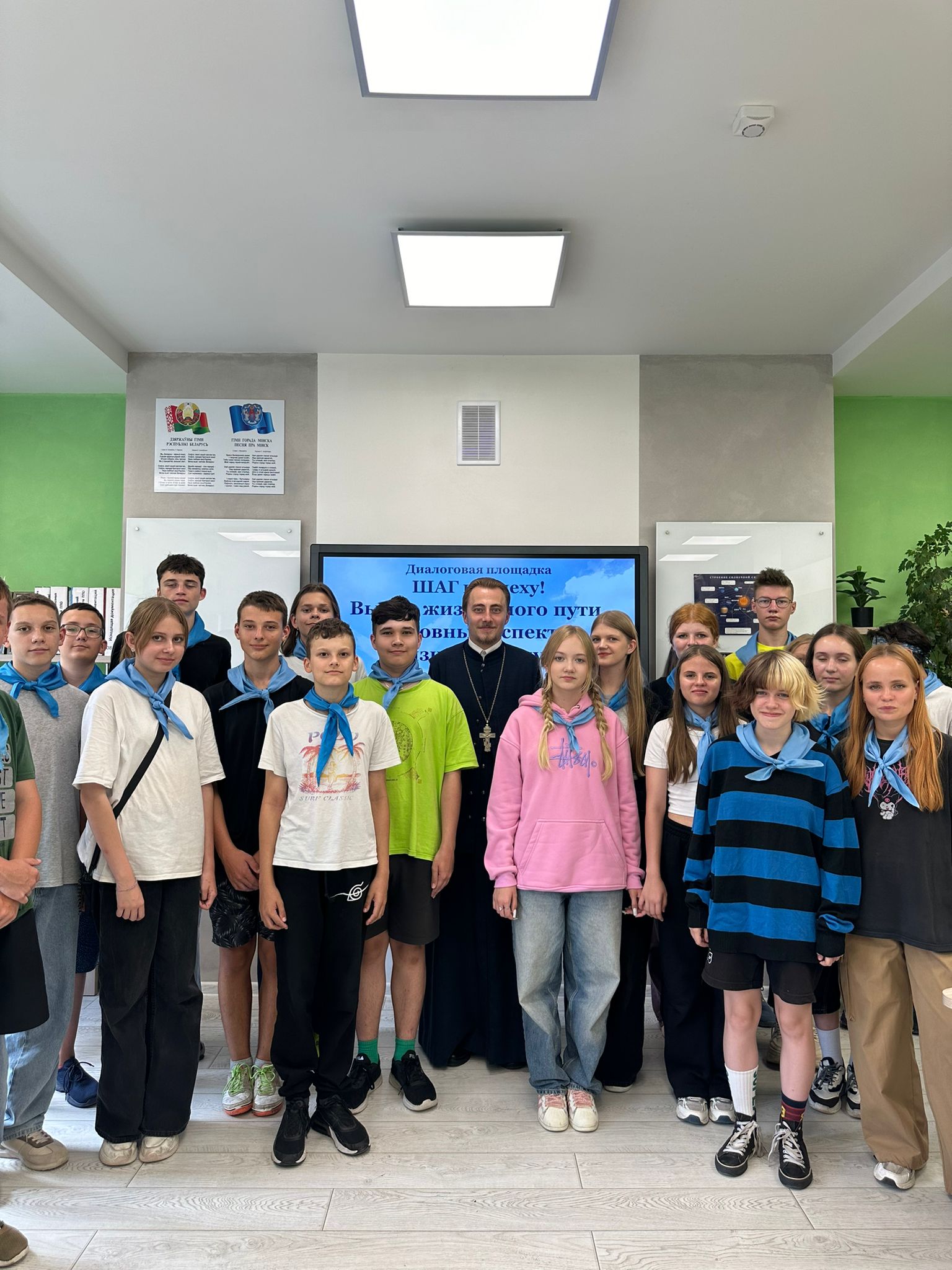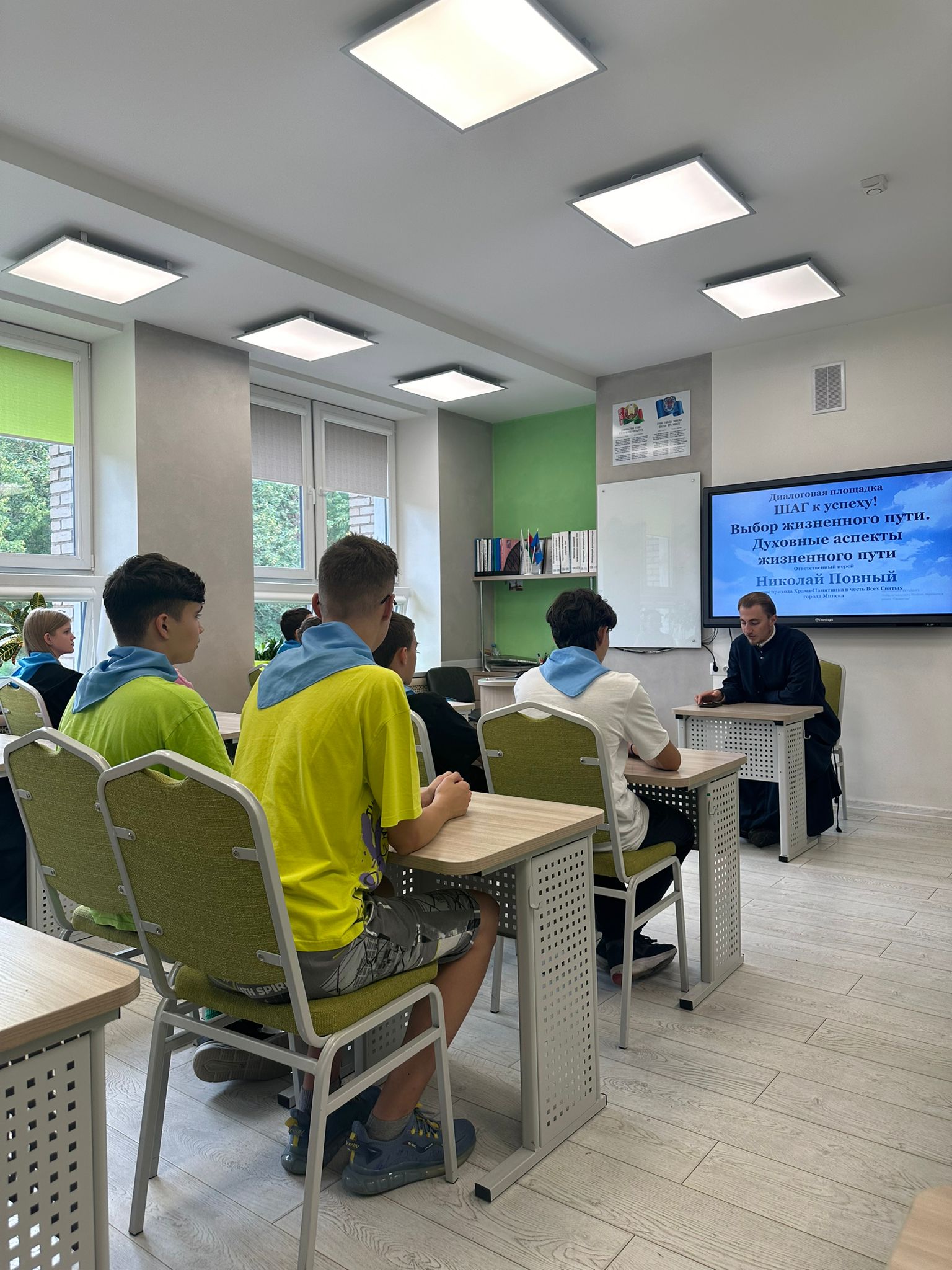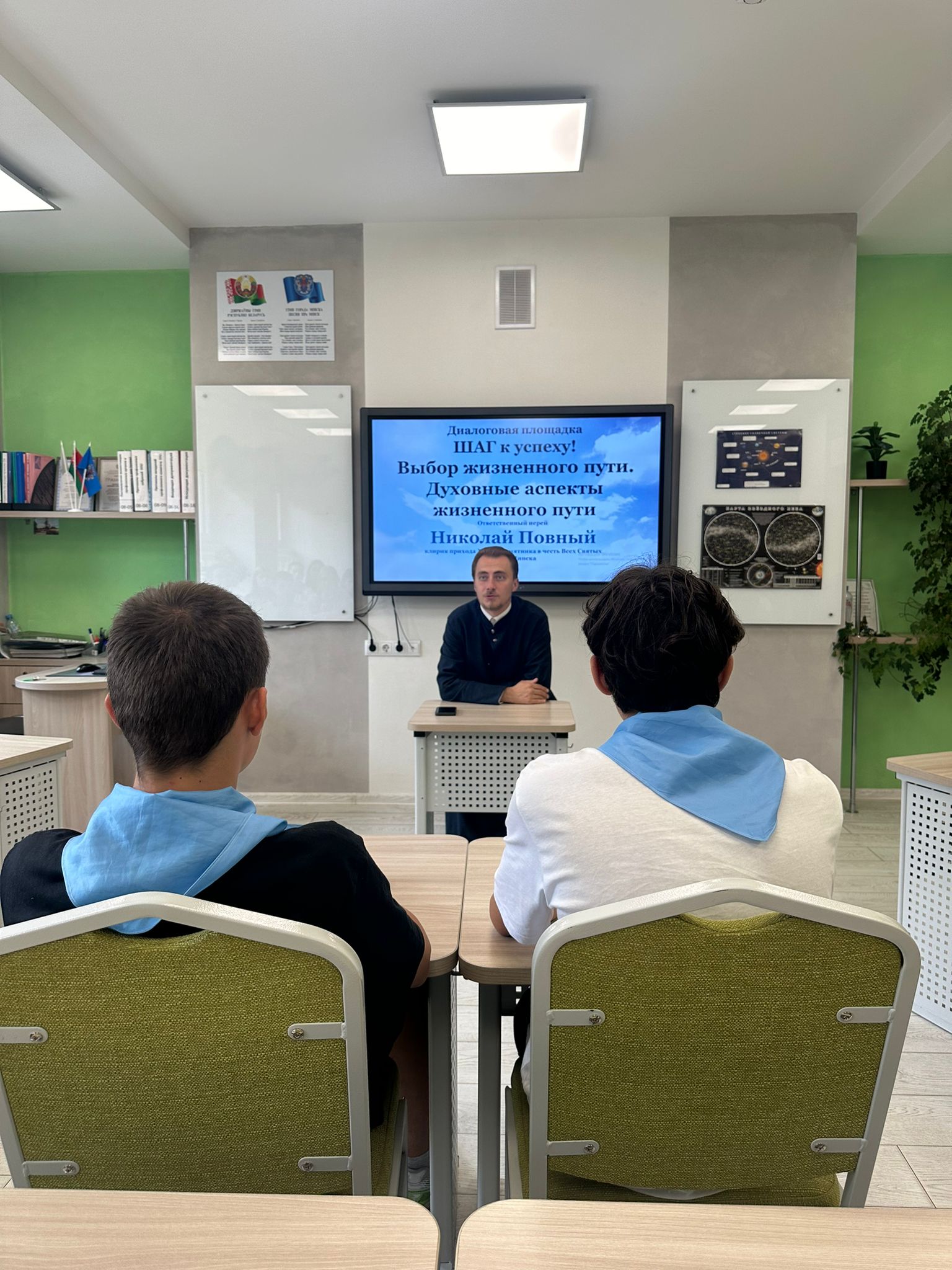 На развитие нравственных качеств личности и этического самосознания была направлена диалоговая площадка «Шаг к успеху. Духовные аспекты выбора жизненного пути» с клириком прихода в честь Всех Святых г. Минска, ответственным за взаимодействие Белорусской Православной Церкви с учреждениями общего и среднего образования по г. Минску и Минскому району иереем Николаем Повным.