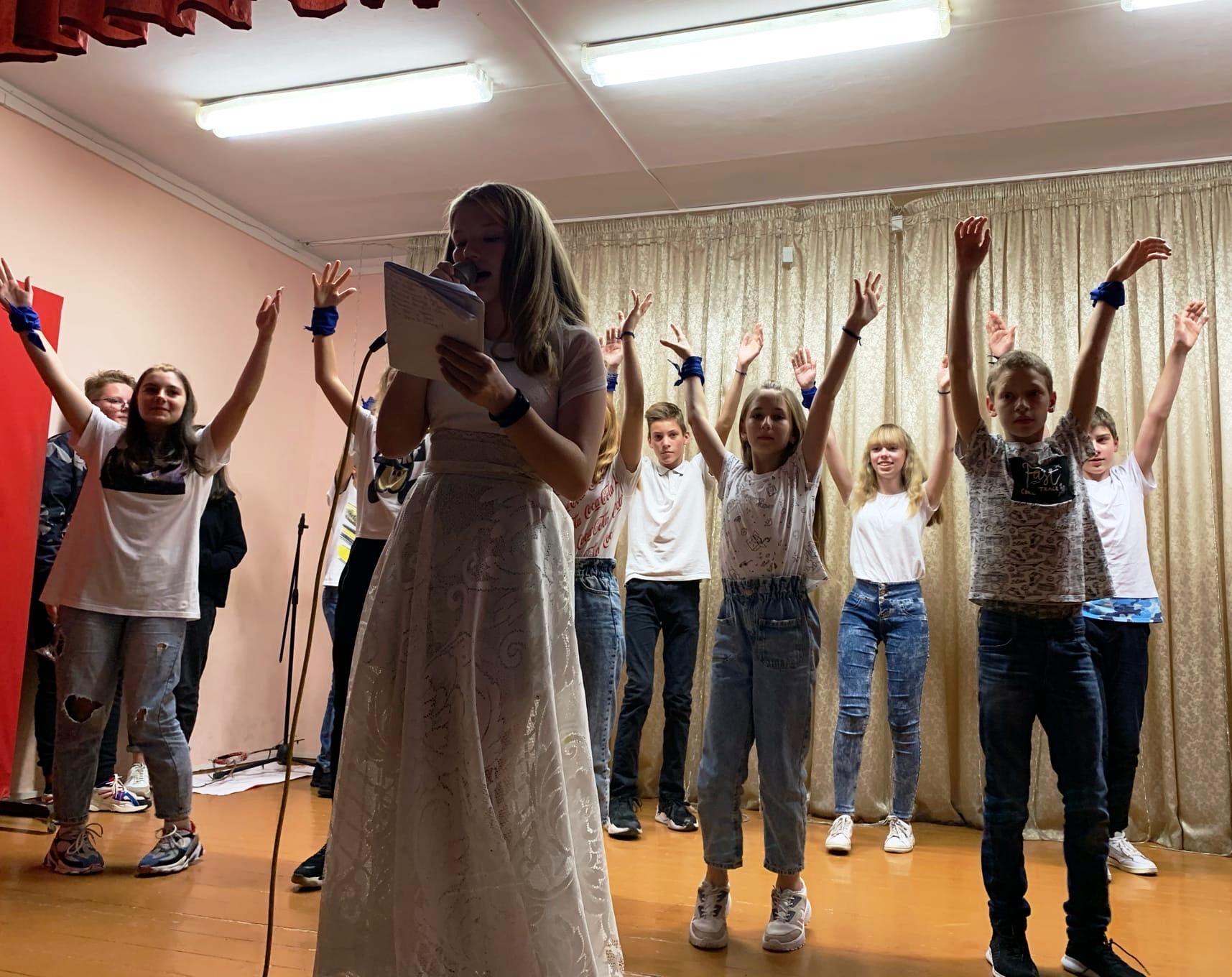 «Лидеровидение» - яркое музыкальное шоу. Во время мероприятия участники и зрители «побывали» в разных странах, узнали об интересных традициях других народов, подпевали песням и пританцовывали в такт танцам «представителей» других национальностей.