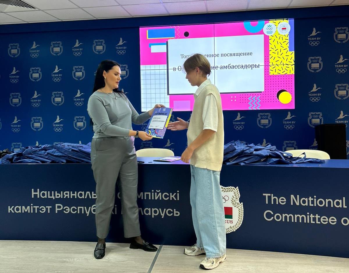 В завершающий день занятий отряд «Олимпийские амбассадоры» посетили с экскурсией штаб-квартиру Национального олимпийского комитета Республики Беларусь, а по её завершении в торжественной обстановке состоялось вручение сертификатов, подтверждающих, что ребята действительно теперь являются олимпийскими амбассадорами и могут делиться полученными знаниями со своими сверстниками. Каждый амбассадор получил также памятные сувениры и подарки от Белорусской олимпийской академии.