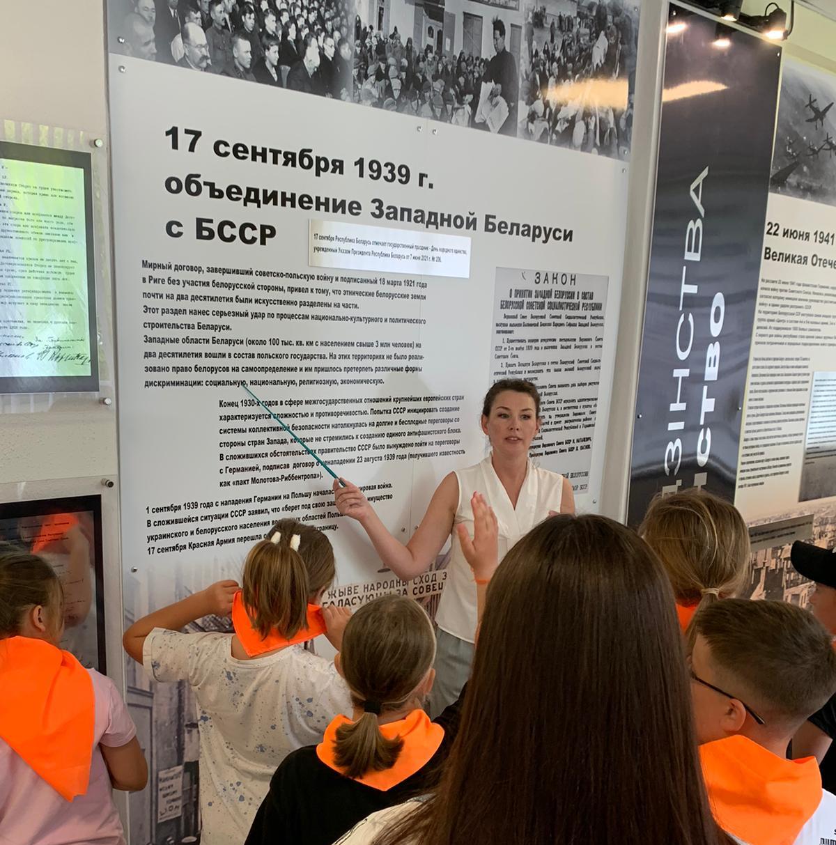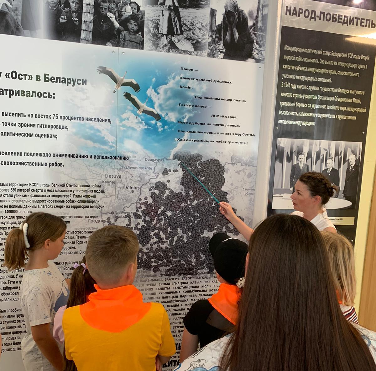 В рамках патриотического воспитания для участников смены ы центре «Лидер» прошла интерактивная экскурсия «Беларусь: вчера, сегодня, завтра» и видеолекторий с обсуждением «Геноцид. Дело №».